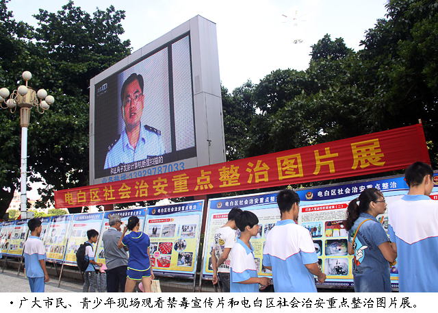 宣传活动现场气氛高涨,包括电白中学学生在内的1000余名群众现场接受了教育,他们观看了禁毒宣传片,阅览了电白区社会治安重点整治图片展,参与了禁毒宣传现场涂鸦等。活动共接受群众咨询约200余人,现场涂鸦并派发纸扇100余把,派发禁毒宣传资料3000余份。