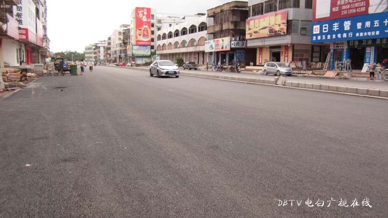 三角圩至南国山庄段,路面已经铺设了第一层沥青,路面平整宽阔。
