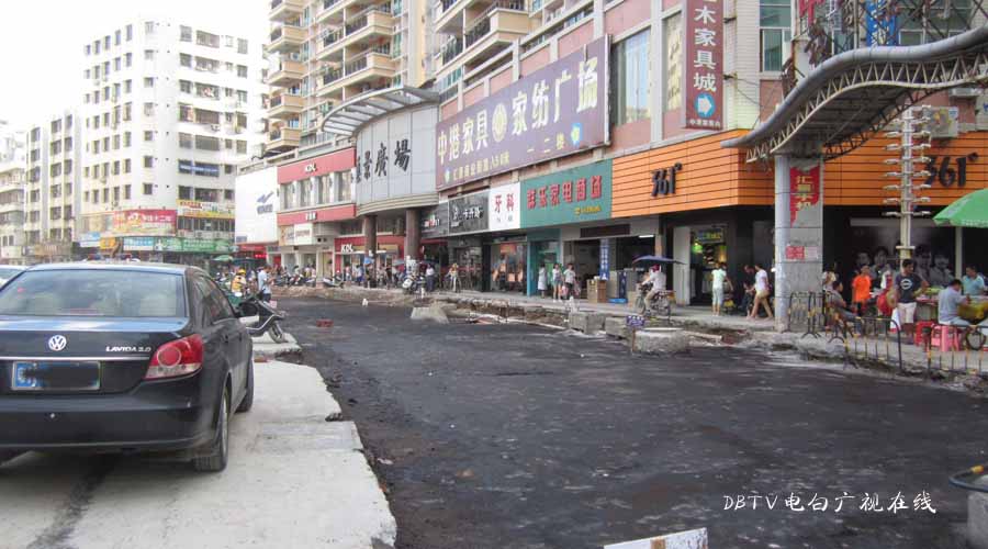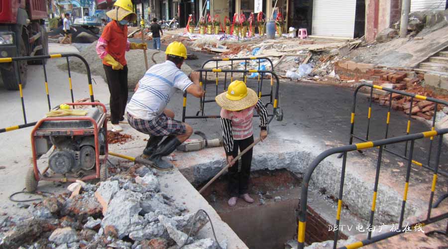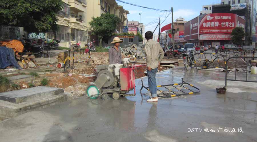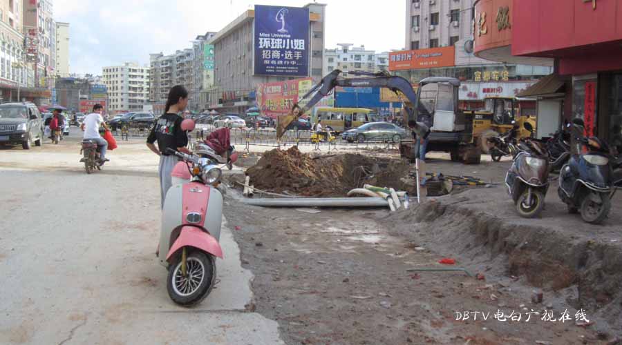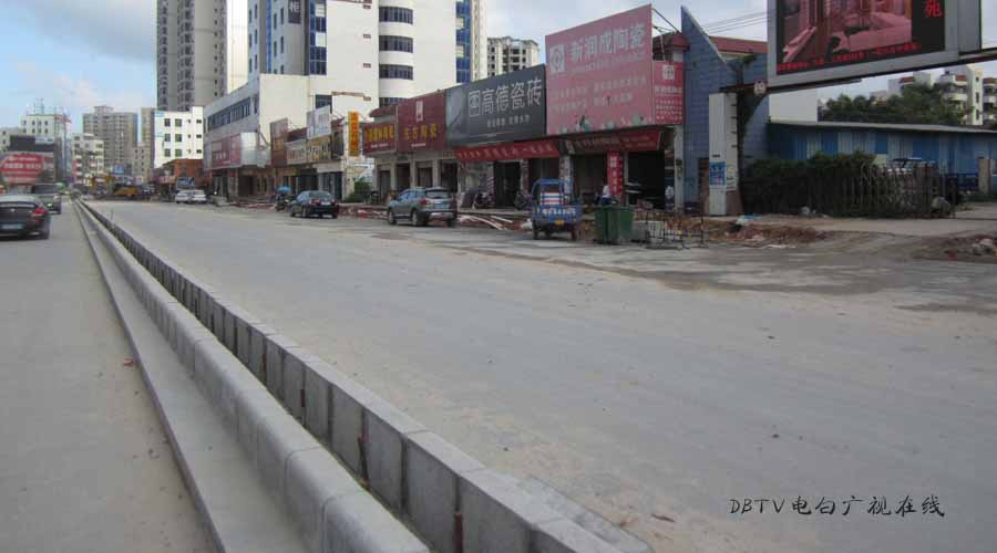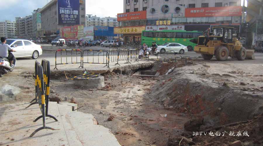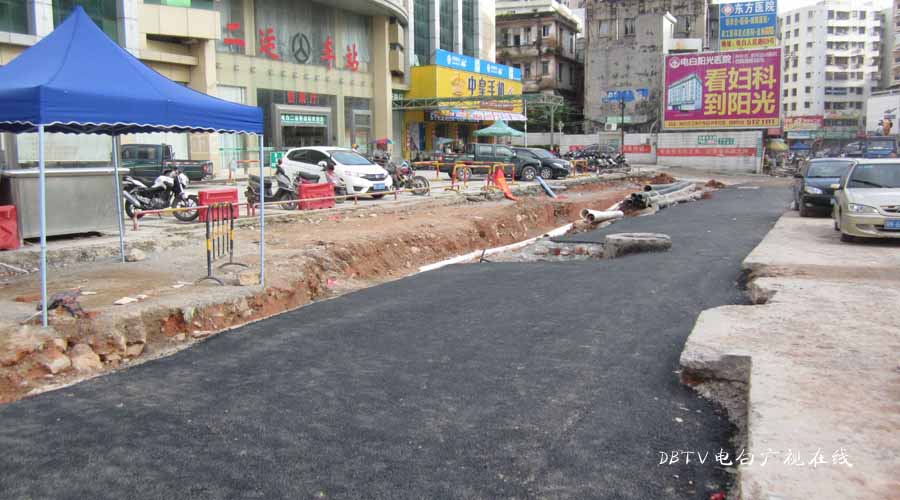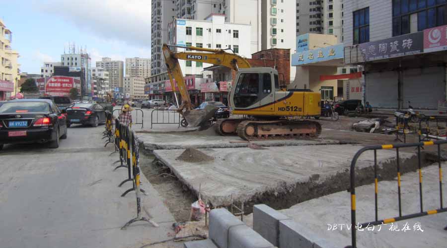 三角墟至水东加油站段的面层混凝土层已经全部铺设好,小编在水东中学门口看到,一台钩机在把原来预留的几条土沟的泥挖开,据现场的工人介绍,这是要进行管道填埋,然后浇筑混凝土填平。