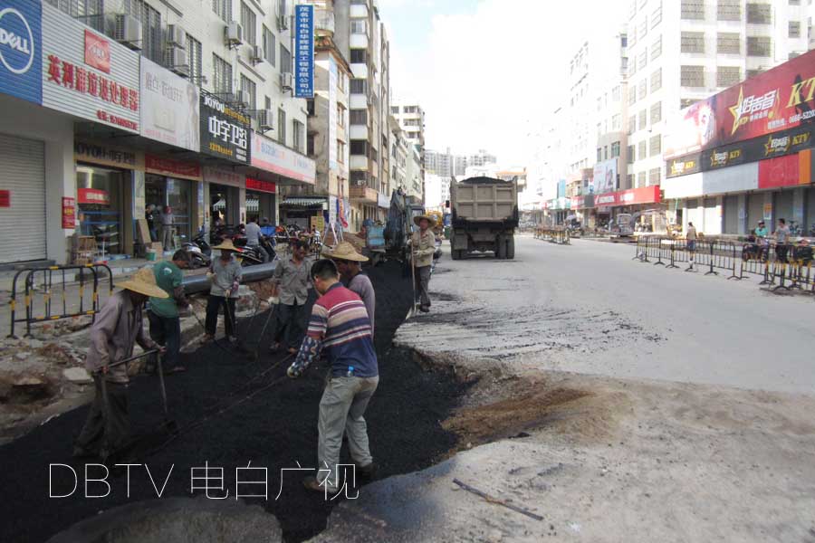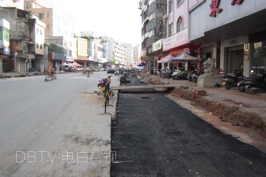 沥青垫层东西两面各完成3719米,西湖横路也铺设了沥青垫层,车站转盘也已铺设了沥青垫层。
