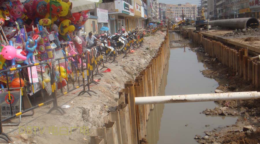 中心台路段,自来水管铺设工作仍然继续进行中,由于施工现场在路两边,来回车辆缓慢行驶,没有造成交通阻塞等情况。