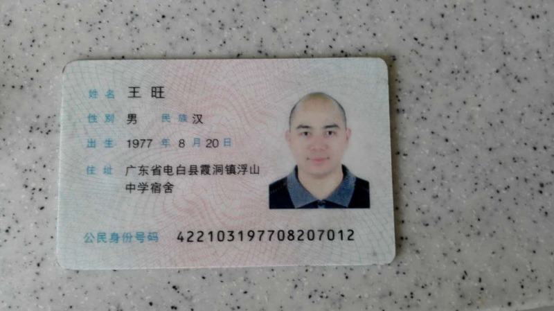 我叫王彩丰,我哥叫王旺,今年38岁,身份证号:422103197708207012.是茂名市电白区霞洞镇电白第三中学的一名人民教师。