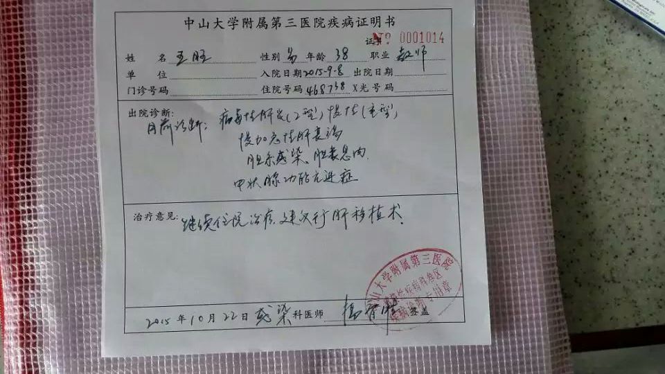我哥他在三尺讲台默默耕耘十几年,不敢说为社会培养了多少人才,也算兢兢业业,尽心尽力做好本职工作;在家孝顺父母,家庭和睦,虽然收入不高,但上有老下有小,也算有天伦之乐。自从今年初不幸得了急性肝衰竭,在广州市中山三院肝病科治疗,前期的治疗费用已令这个家庭近乎崩溃!现更需做肝移植手术才能有生存机会,巨额的治疗费对于这个家庭来说是雪上加霜,亲戚朋友也尽力帮忙了,但仍是杯水车薪!无奈之下,在电白论坛这个平台向社会好心人士求助!请大家帮帮我!帮帮我哥!帮帮这个频临崩溃家庭!