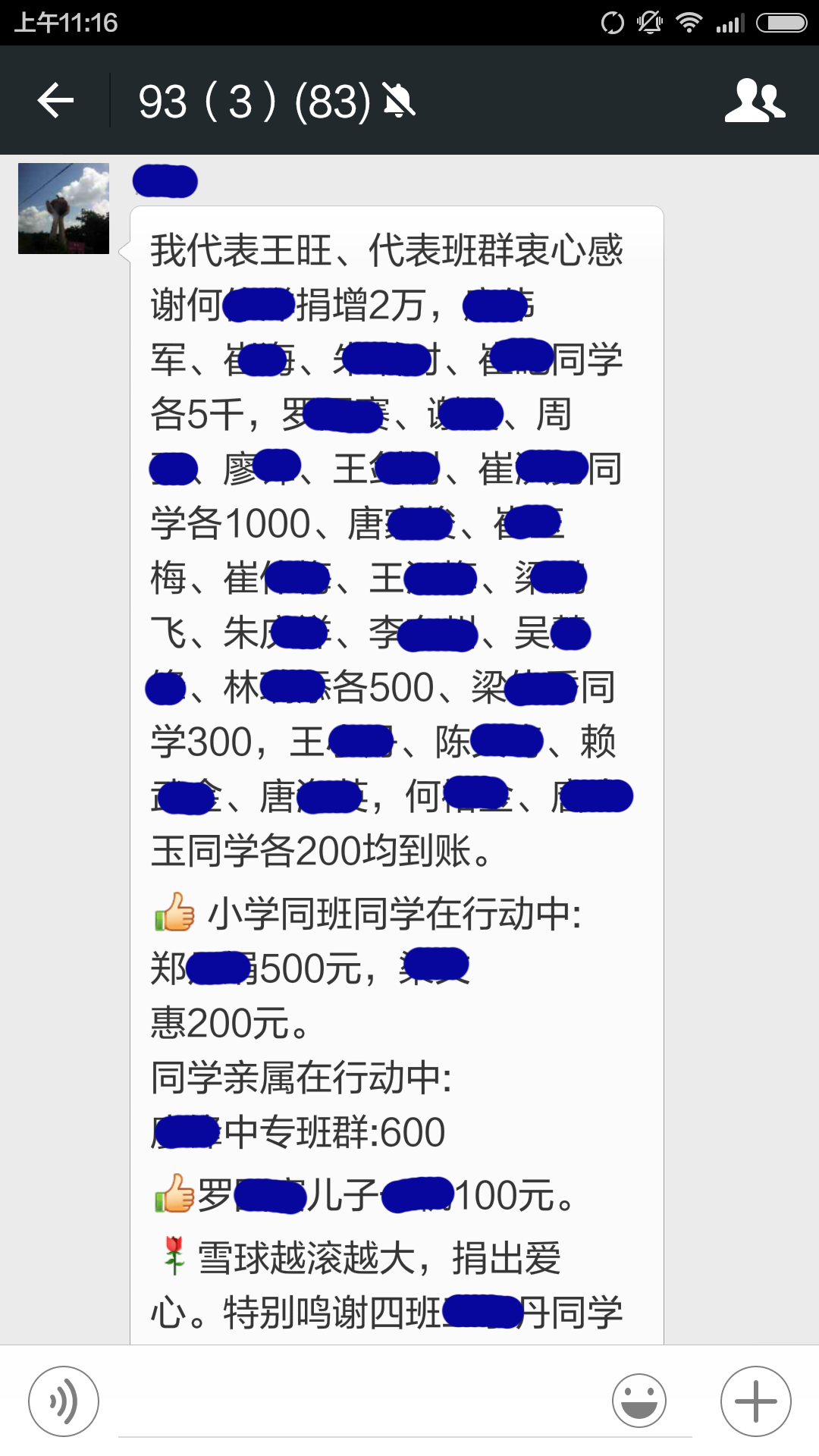 刚收到水东一位好心大姐转来的2000元,谢谢!