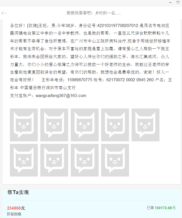 一 一点云 小学三年级 注册 2006-10-21 消息 222 反馈评分 5 点数 1 2015-10-25 #95 大家提防骗子。捐款帐号和众筹平台的不会变。非常感谢你的支持和帮助!赠人玫瑰,手留余香,感恩有你。(电白三中爱心接力团)