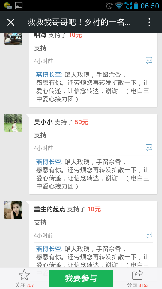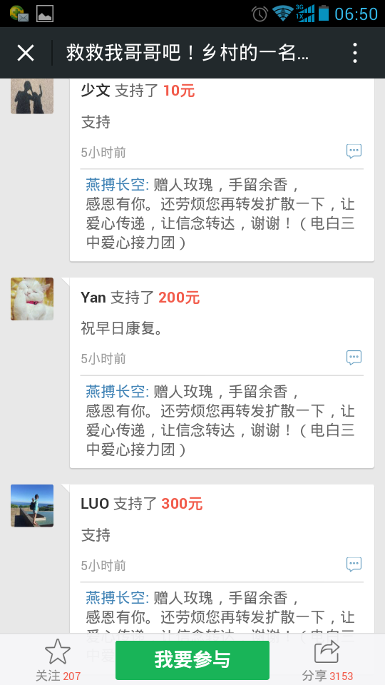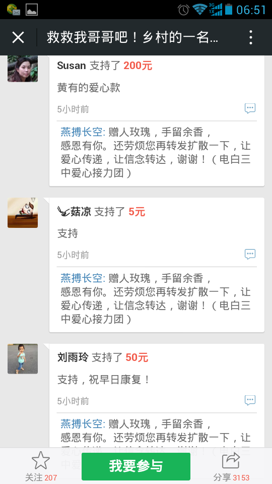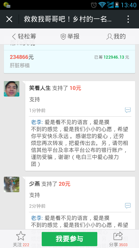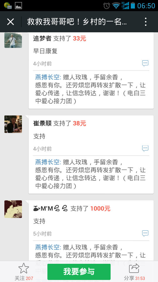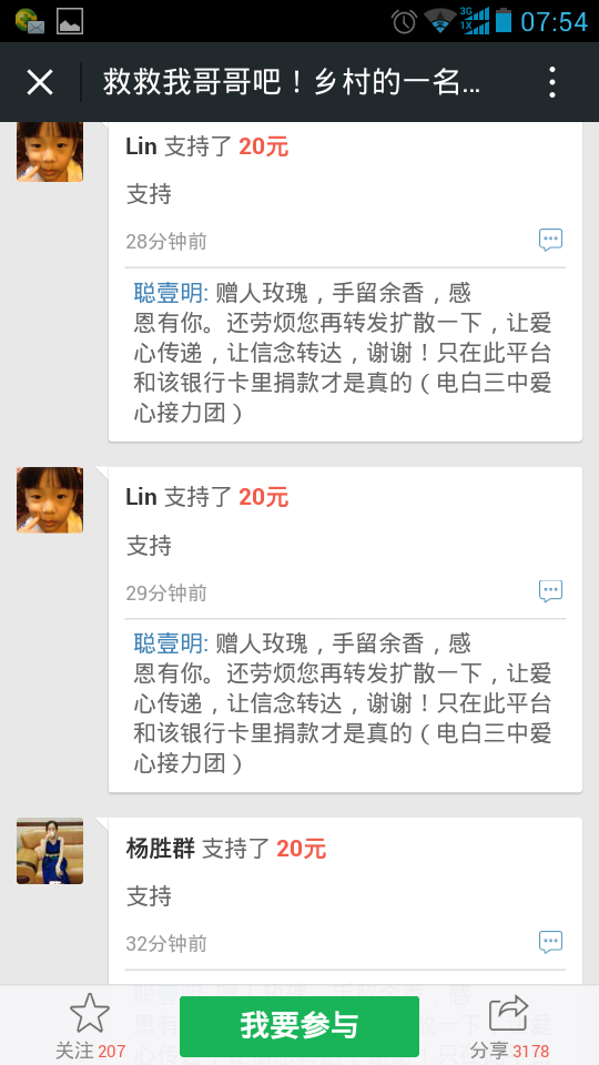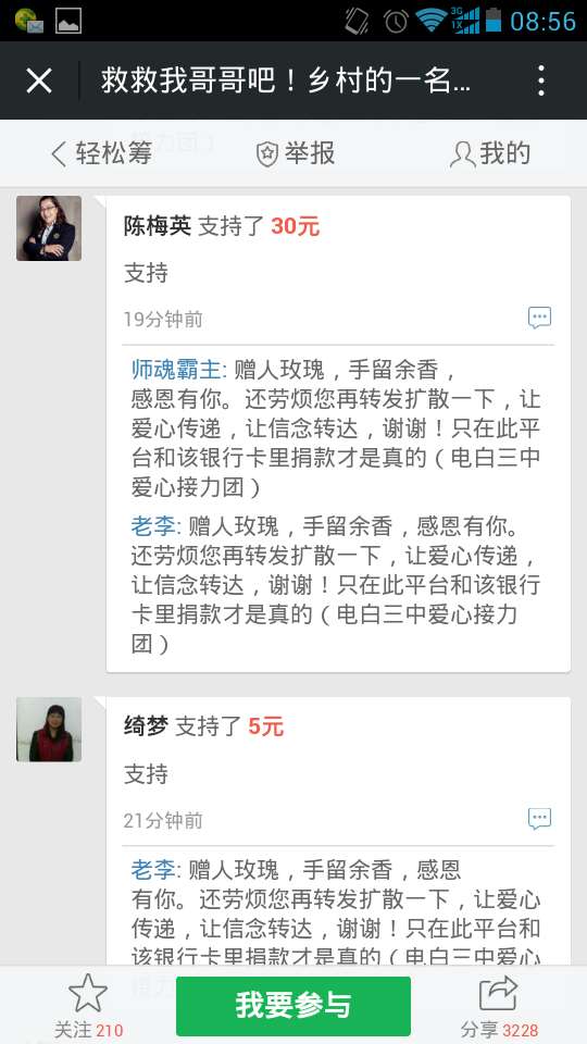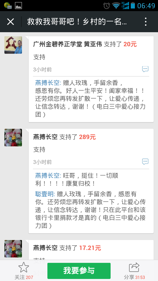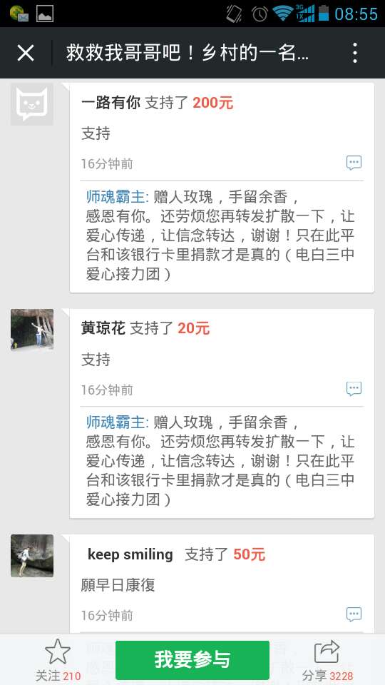 一 一点云 小学三年级 注册 2006-10-21 消息 222 反馈评分 5 点数 1 2015-10-26 #121 爱心网友接力跑,众募平台已破13万大关!谢谢! 王旺老师的弟弟:王彩丰电话:15989870775 帐号:62170072 0002 0945 260 户名:王彩丰 中国建设银行深圳市南山支行 支付宝账户:wangcaifeng367@163.com 众募平台网址 http://www.qschou.com/project/4c79e852-be1...苯泳杩睿谢谢! 可以在手机直接点击该网址进入捐款的。 附件 1.jpg 59.3 KB · 查看: 563