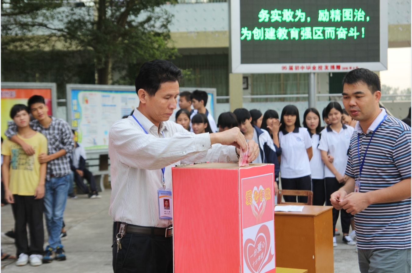 电 电白区第三中学 幼儿园 注册 2015-04-03 消息 10 反馈评分 0 点数 0 2015-10-26 #122 电白三中工会已于今天下午5:30将收到的52985元捐款送给王旺家人。 学校的捐款活动仍在进行中,截至今晚9:30,共收到师生的捐款55172.6元。 衷心感谢社会各界人士对王旺老师的帮助! 愿王旺老师早日康复!