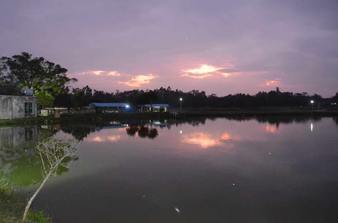 快乐的时光总是不觉中溜走,转眼就到了黄昏,大家相互合作搭起帐蓬,闲暇中有人唱歌,有人捉鱼,有人钓鱼,不时传来孩童的嬉笑声、惊呼声,我徜徉在农庄的小径,呼吸着田野中燃烧过稻杆的熏香,似乎嗅到了农民对明年五谷丰登的希望,鱼塘边有一条用木板搭建约5米长的简陋断桥,我注视着,联想着,但看不出杭州西湖断桥许仙和白娘子传说中的浪漫故事,也听不出姚贝娜《断桥离情》里断桥依旧在,心事成云烟的伤感倾诉,却感受到庄主回归本心,向往自由的心境,以及看庭前花开花落,望天上云卷云舒的洒脱,也感受到范仲俺《岳阳楼记》中不以物喜,不以已悲的情怀,所以我想冒味称木桥为"归桥"。