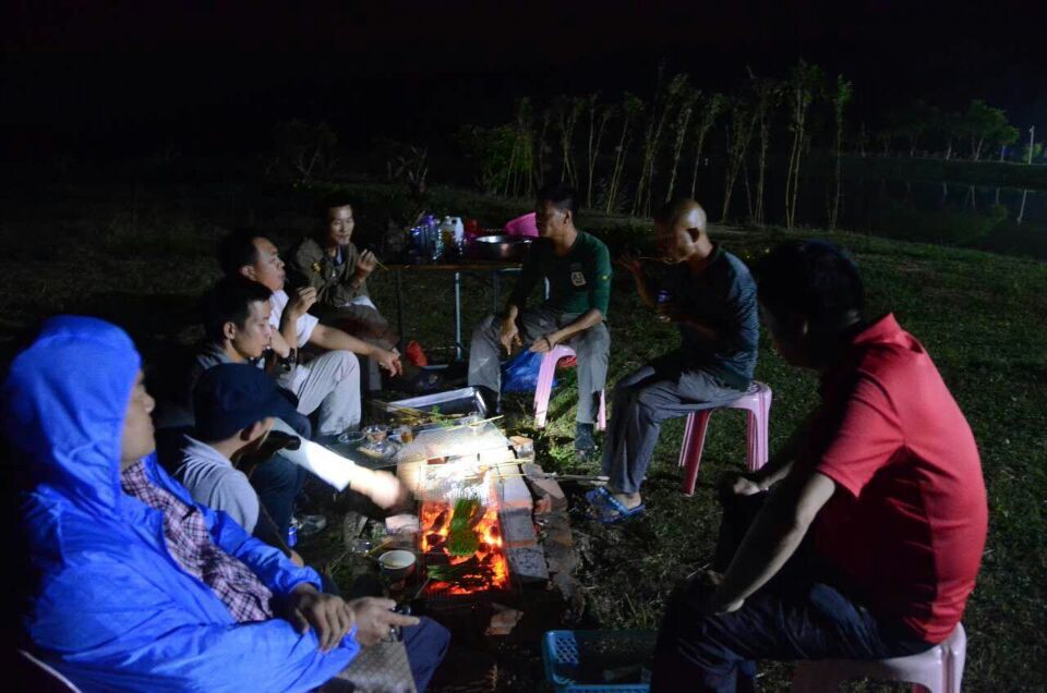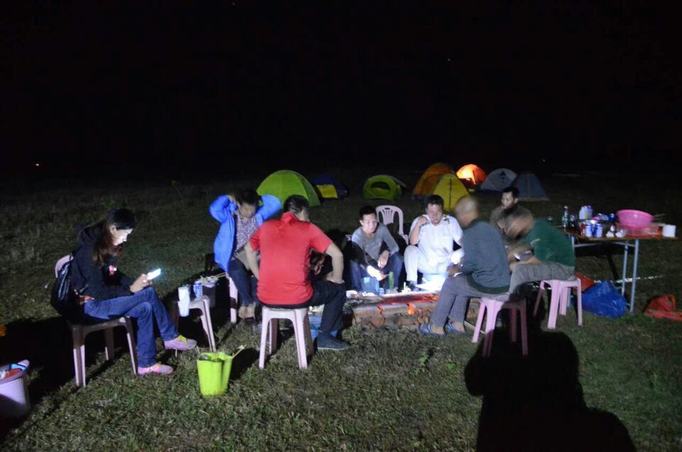 夜幕降临,秋风带凉,正是烧烤好时光,一番忙禄,串鸡、罗非鱼、韭菜、鸡蛋、番薯齐齐摆上,骑兵、发祥、彬哥、聪哥、晓荣、一中小陈、家桥庄主还有牧羊、家琪、珊、娟、梅等个个口下无情,在炭火的映照下,洋溢着青春激情的笑脸,举杯痛饮,说梦想,谈未来,仿佛又回到同学少年时。此时此刻,人不醉卧沙场,心已醉回童年。