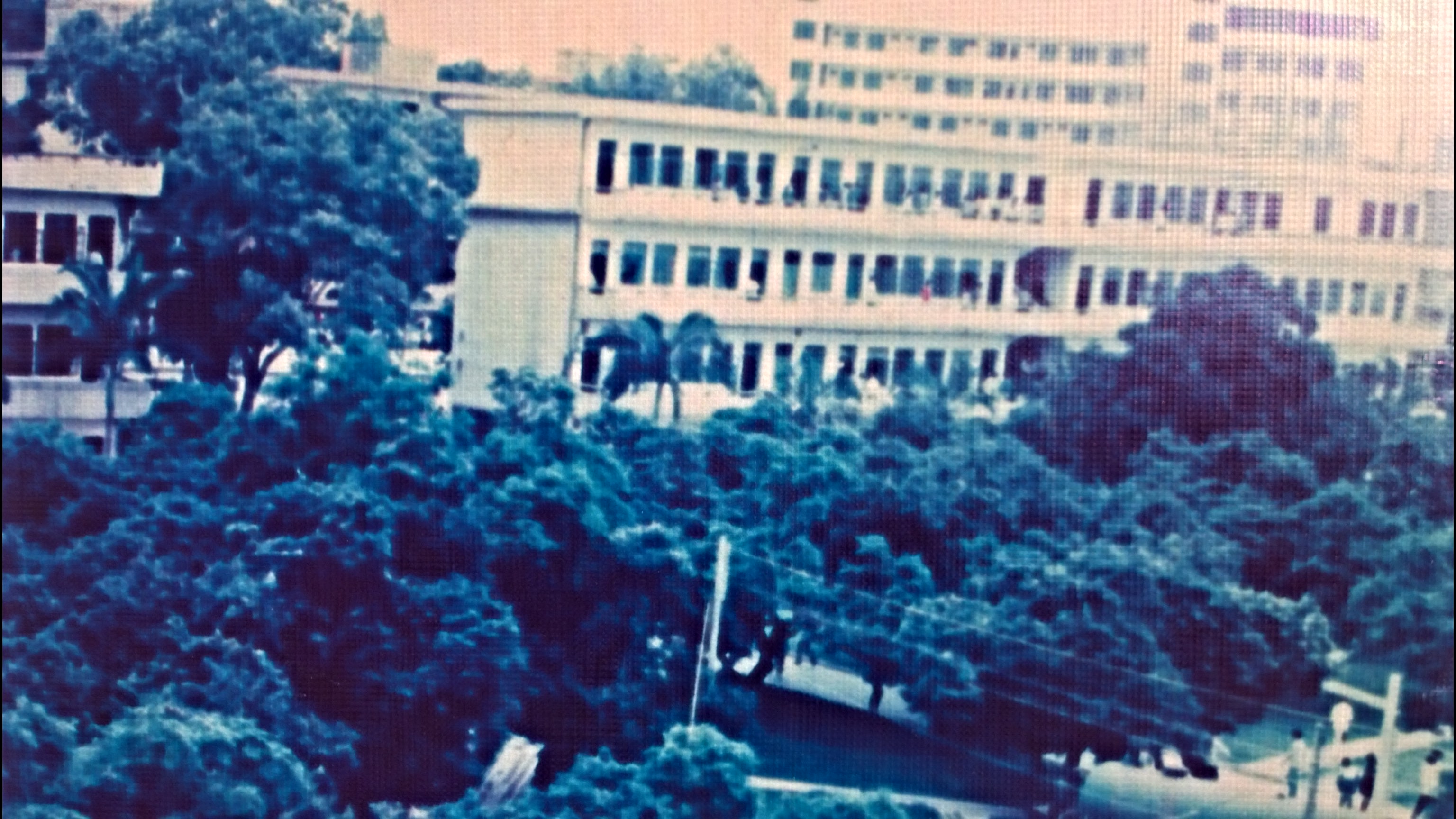 2005年之前的主教学楼,当时的荔枝园密密麻麻,有些树被填了1.5米一上,才有今天的平整。