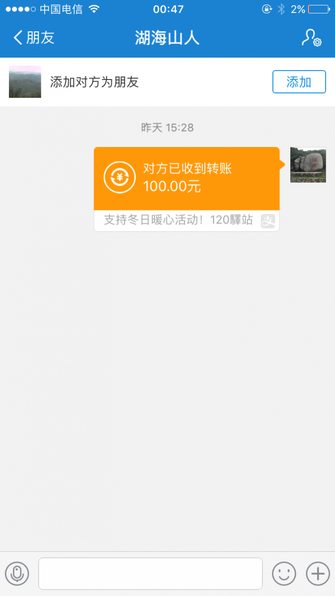 刚才谁给支付宝发了100块钱?