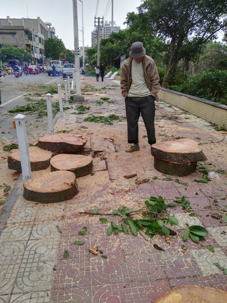 谢谢大家的关注,根据茂名市优化城区绿化有关要求,我区对城区绿化进行优化、美化,由于桥南路路边的十几棵椰树树高过高,部分树芯已被虫蛀,经常有断枝掉下,砸到车辆的车顶,给过往的行人和车辆带来很大的安全隐患,加上台风季节将来,为了保证群众的出行安全,区林业局对路段的椰树进行换种,换种成木棉树;同时,由于两棵大榕树树芯已被蛀,而且太靠近路边,茂盛的树枝已经长出路中间,阻档和影响司机视线,也不太美观,为了安全起见,将其清理。希望大家可以理解和支持。刚才路经桥头时,发现那里塞成了一锅粥。