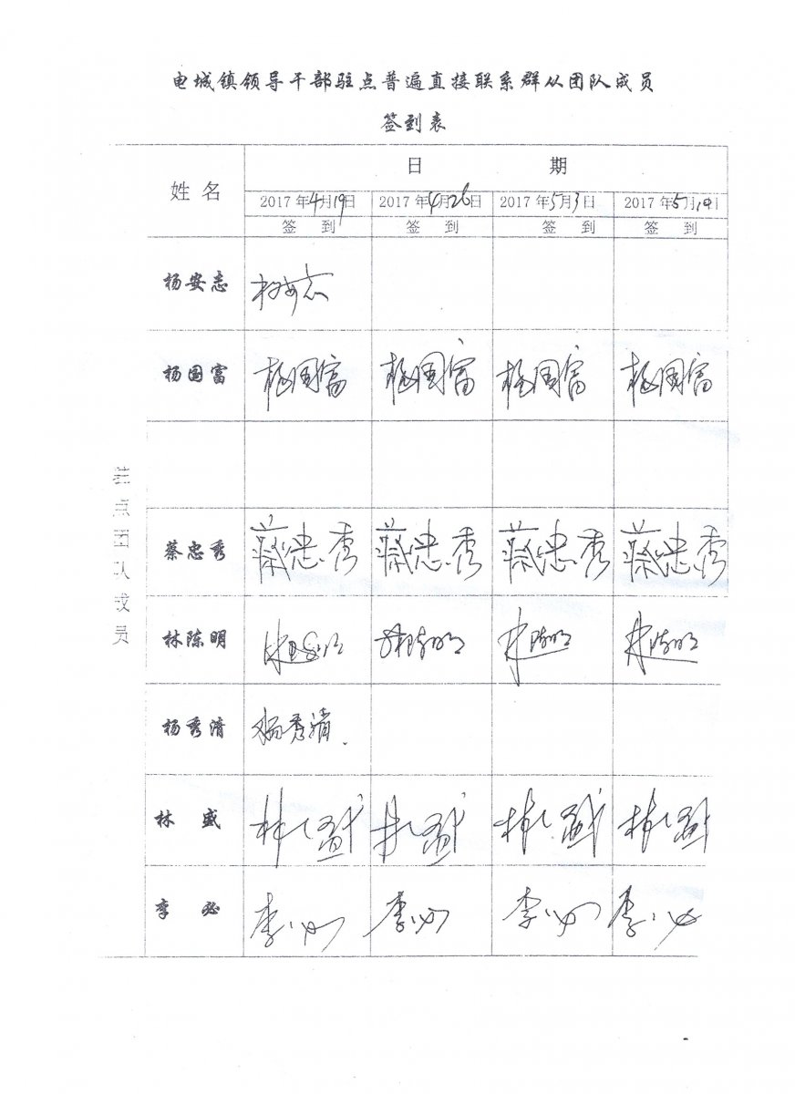 杨安志作为镇驻村工作组长,从今年3月22日后到现在每周三 都不参加帮扶及直接联系群众(附考勤表复印件为证),对他的 所作所为,我们对他意见很大,现恳请纪律对他的违纪问题进行 查处,请求上级到电城镇财政所调查前岚村村委会账务及干部补 助签名表就可查到他的问题,此举报是事实的,决不是打击诬告, 请求纪检部门为民作主,还社会风清气正。