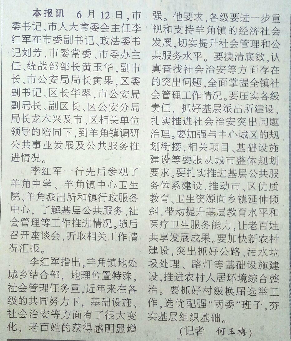 新闻 电白报纸:李红军率队到羊角镇调研