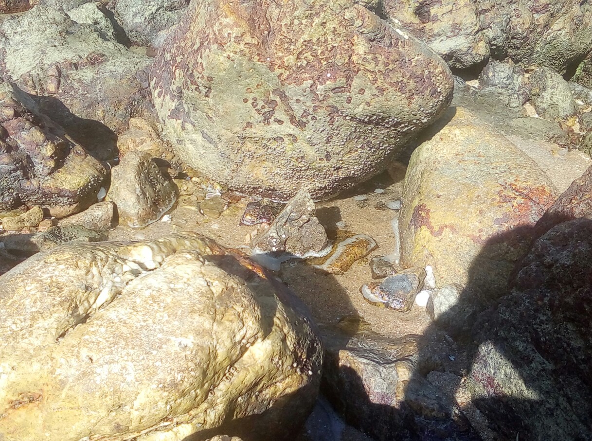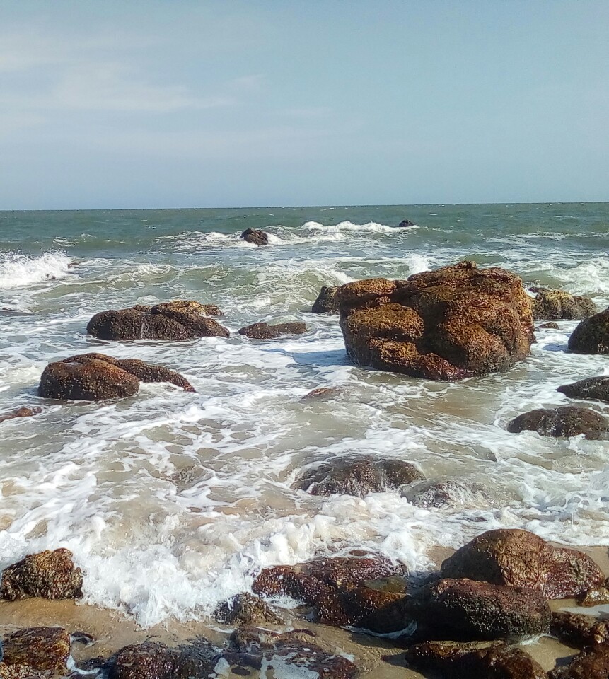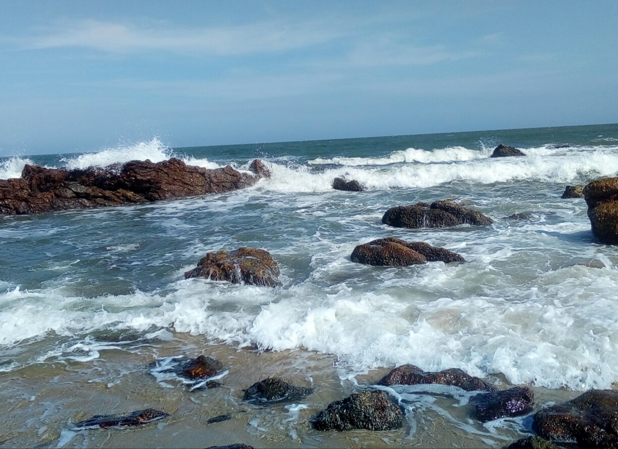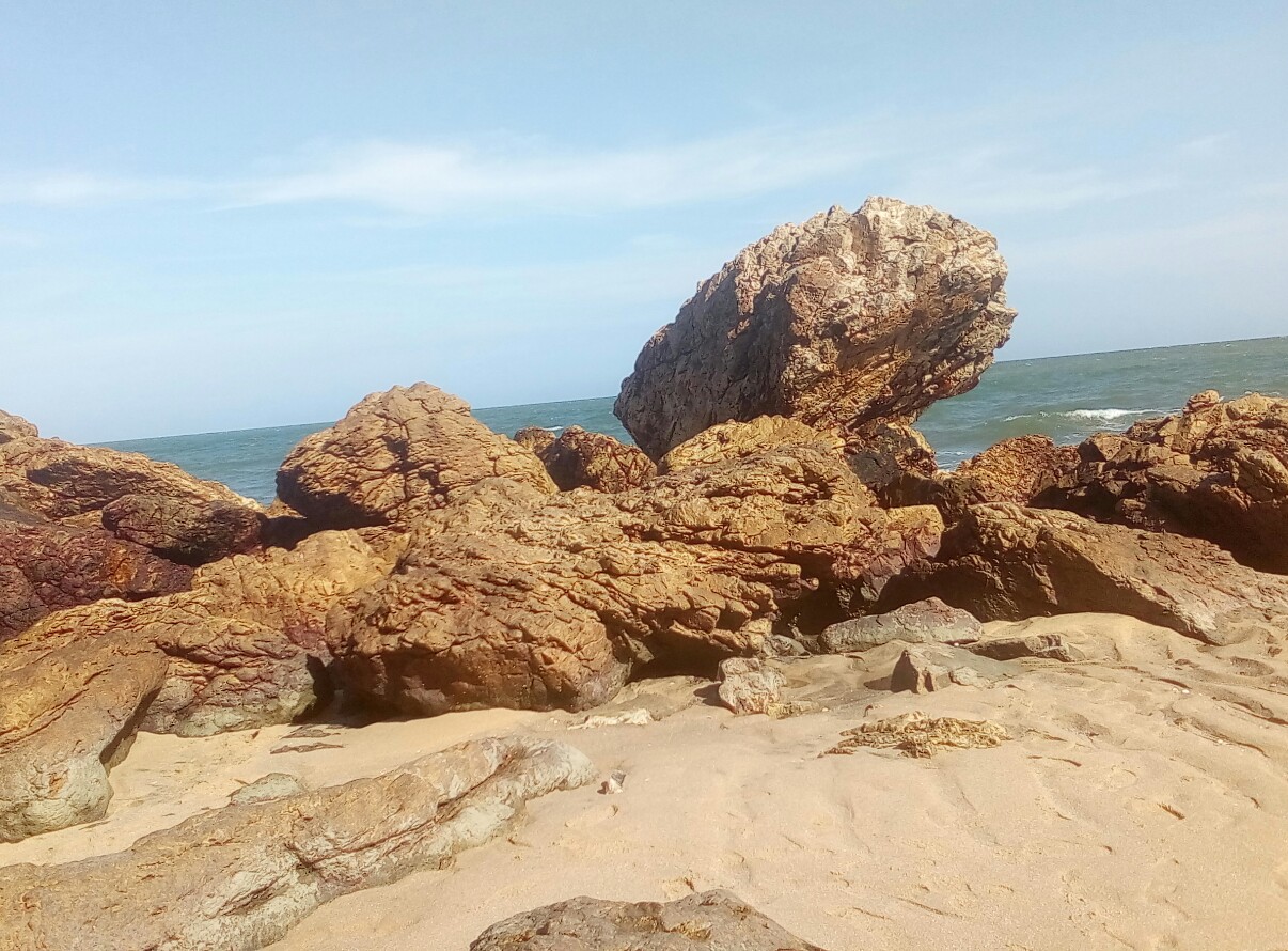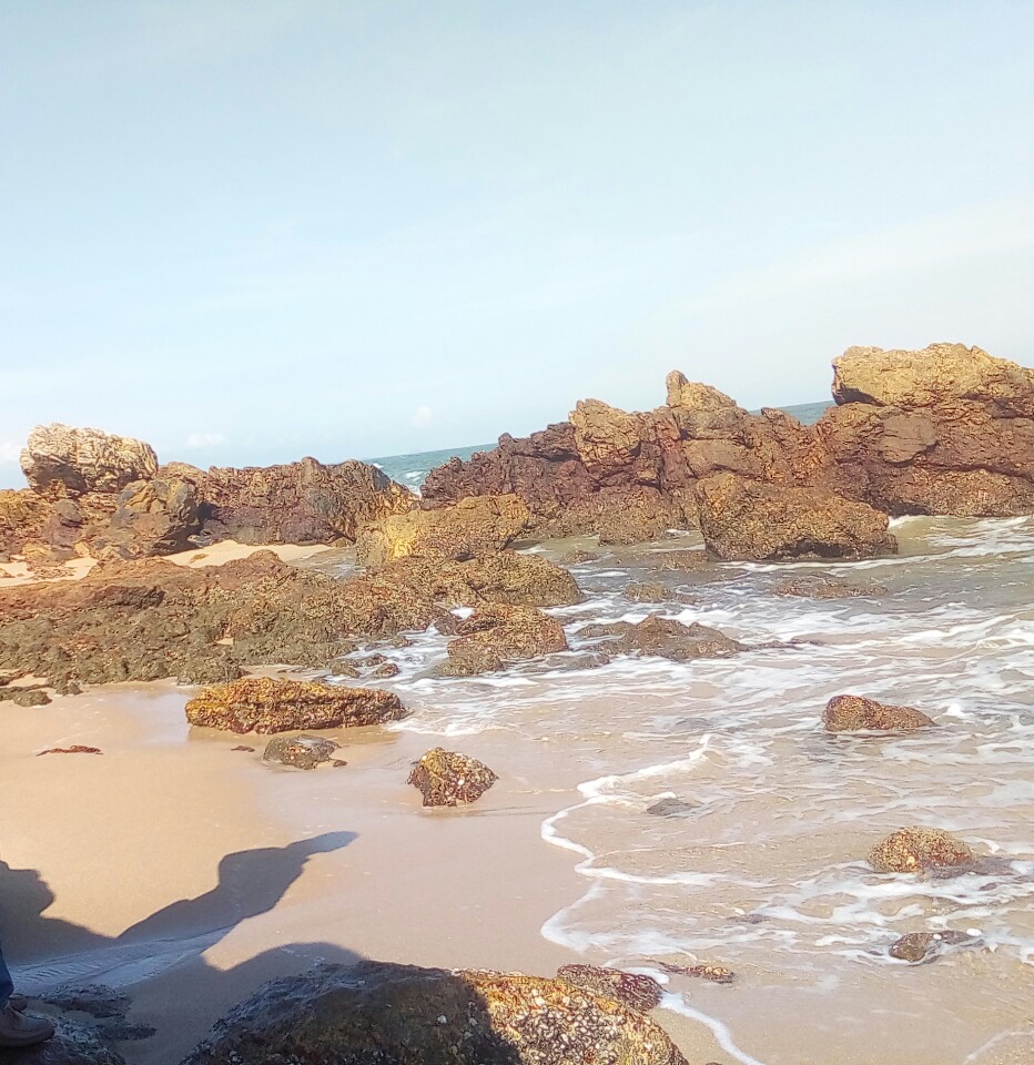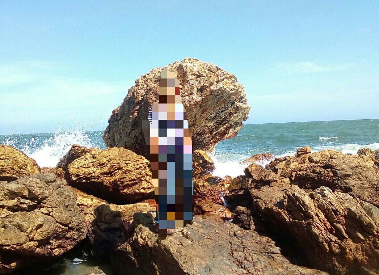 早晨与傍晚都有很多知晓此景的游人来这看海滩,特退潮后,那些外露的乱石,真的挺好看,站在石上,后面那此海水冲击石头,飘起的水花....