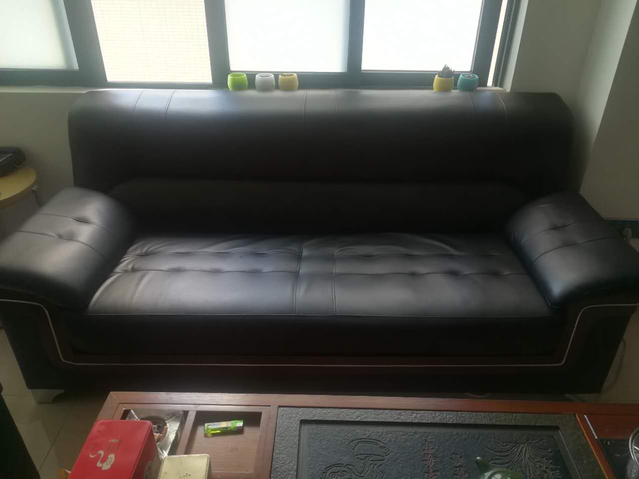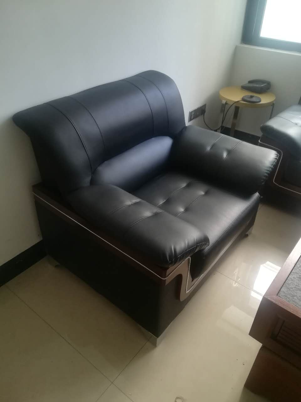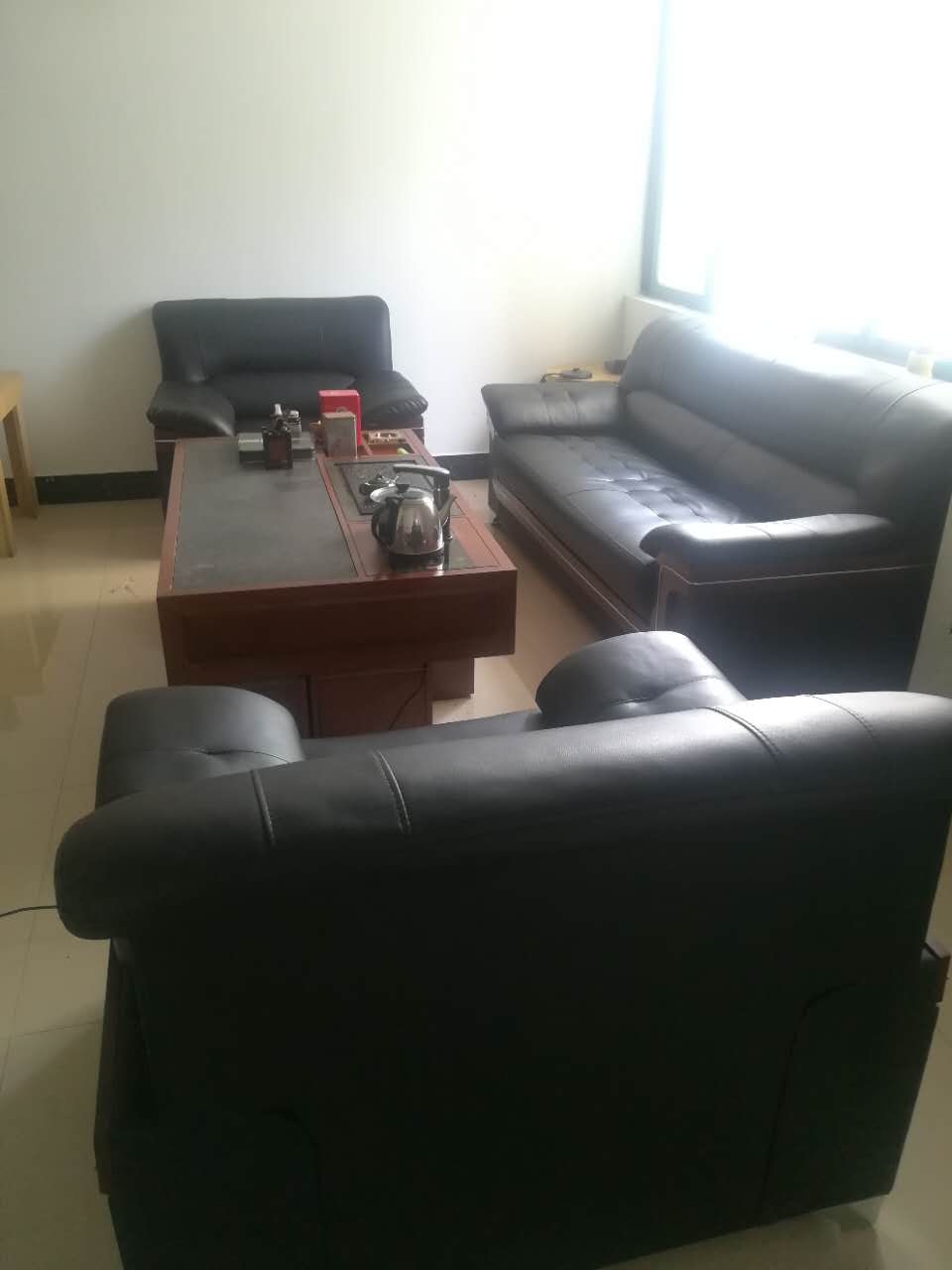 办公室用皮革沙发(3+1+1)和茶几组合,17年4月份购买,还有9成新,因重新置换,现低价转让,物在水东,需要的致电18218690686(梁)