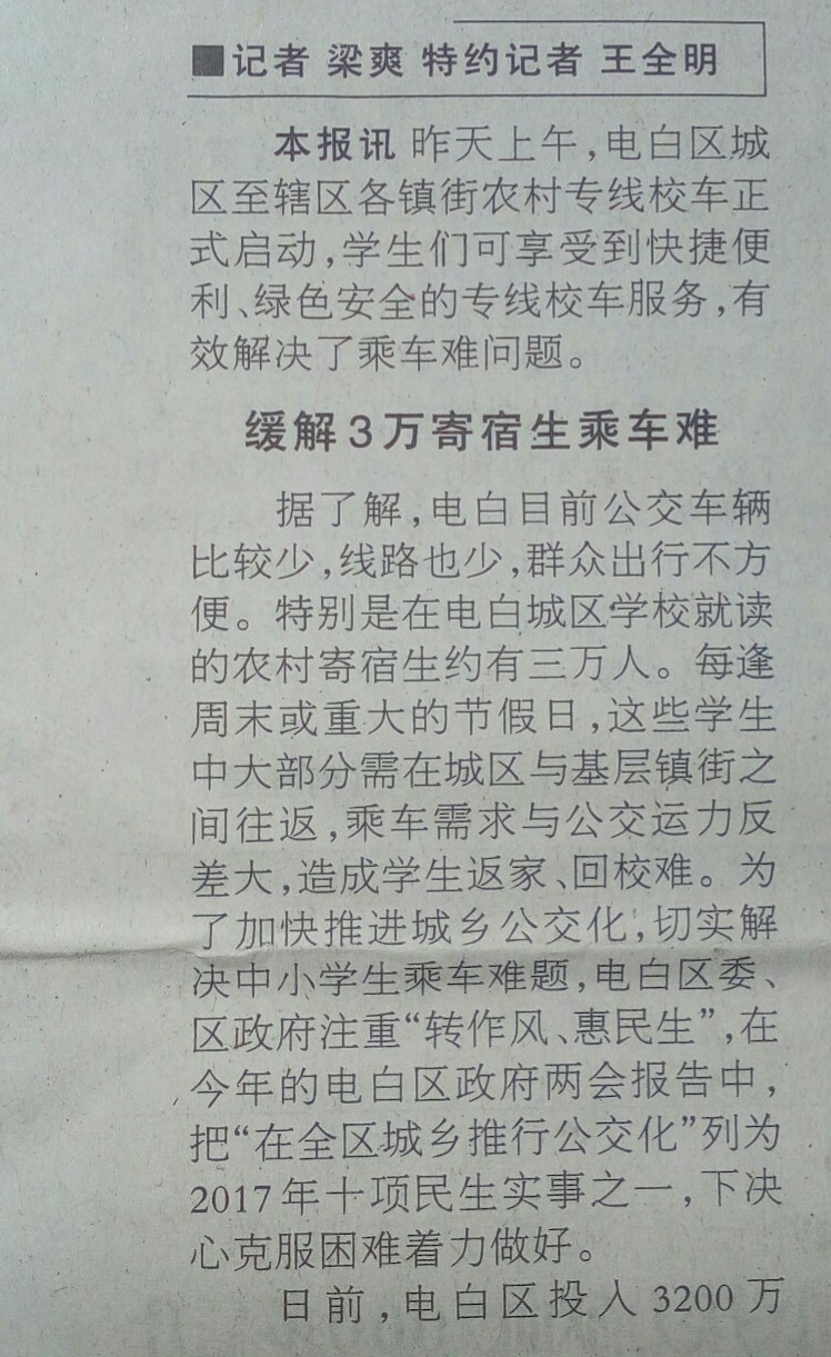 无论咋,这也算便民惠民举措吧,万事开头难,或许慢慢就会习惯成自然吧,希望能更好更人性化点,服务好家乡电白未来的祖国希望的学子们吧!记得一定要安全第一喔,拒绝彼劳驾驶等喔...说着说着,倒有点羡慕现在的学子们了,想以前读个书唉不多说了...