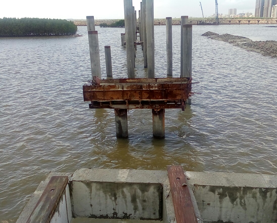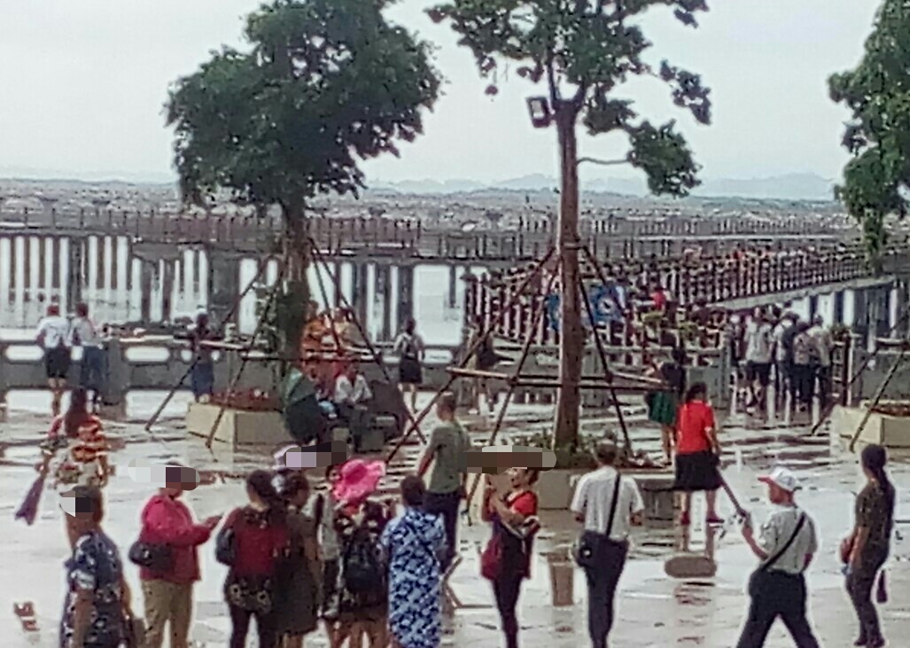 再次声明还在施工中,真的不能不适宜攀爬翻越行走而过,况且也真的有些还没连接石柱,我也是走了一段见前面已没路跨不过去就回头了,走过的时间真心也有点后怕,特看到下面海水,今天又不停顿下大雨,海风又大,吹得人有点受风向一边斜,有时还是蹬下来手扶东西移步走,雨伞都吹歪了