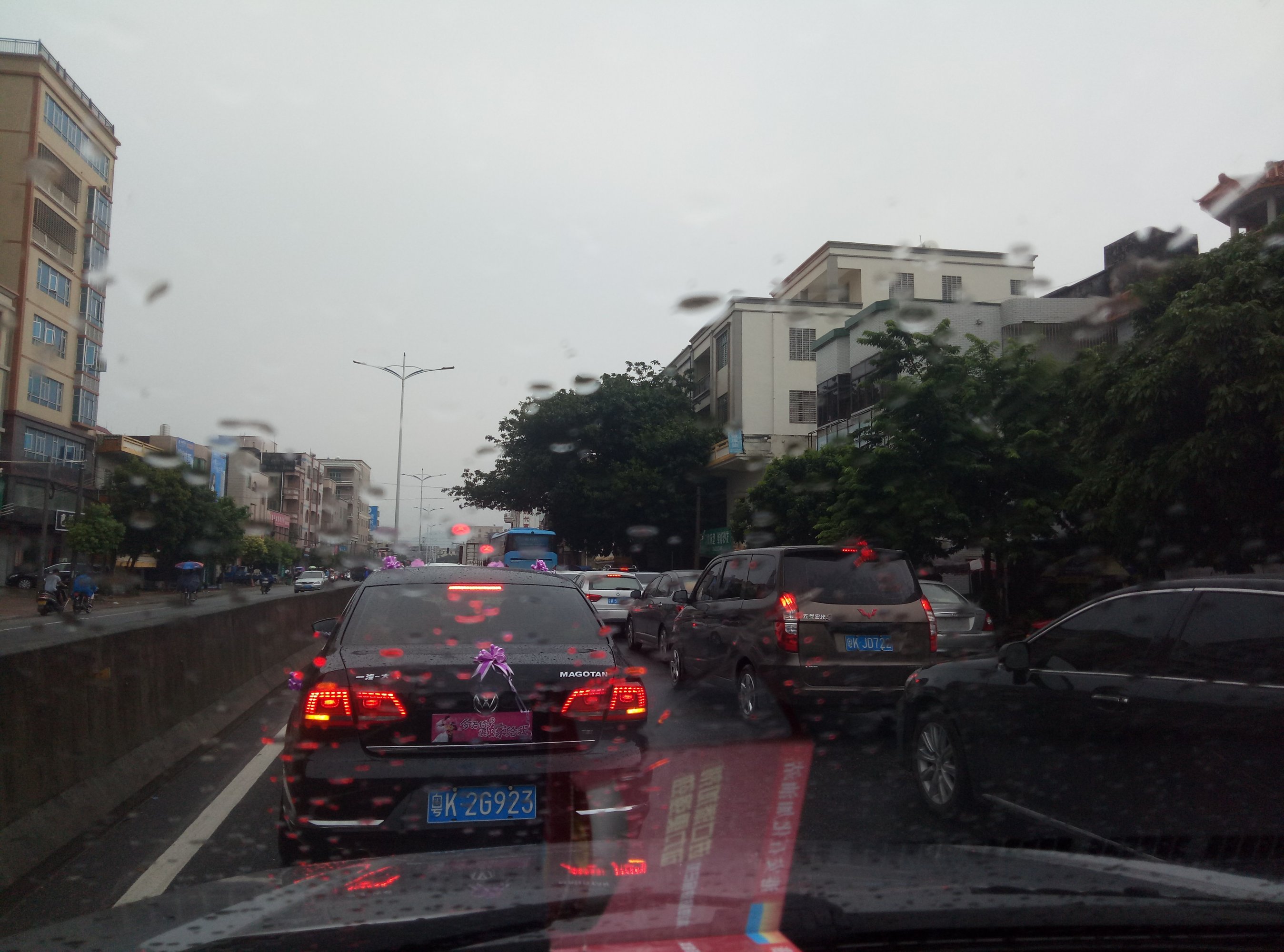 今天12点后。麻岗由东向西,从那笈路口附近一直排到独楼路口附近。 红花路口东西两头都是车。 今天的是国庆黄金周,是中秋节的第二天,博贺村委附近的村庄都做年例,因此来参加车展的宾客车辆比较多,麻岗、红花路口附近路段的车展场面非常壮观。