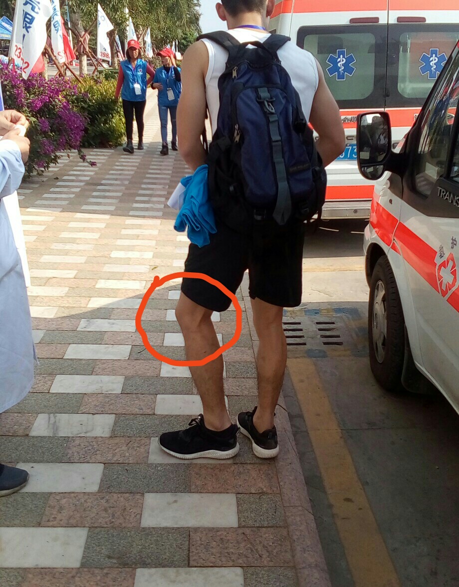 而下这三位也是跑步而来(但有问他们在东汇城总点出发)(有两个受伤医生帮其处理下)