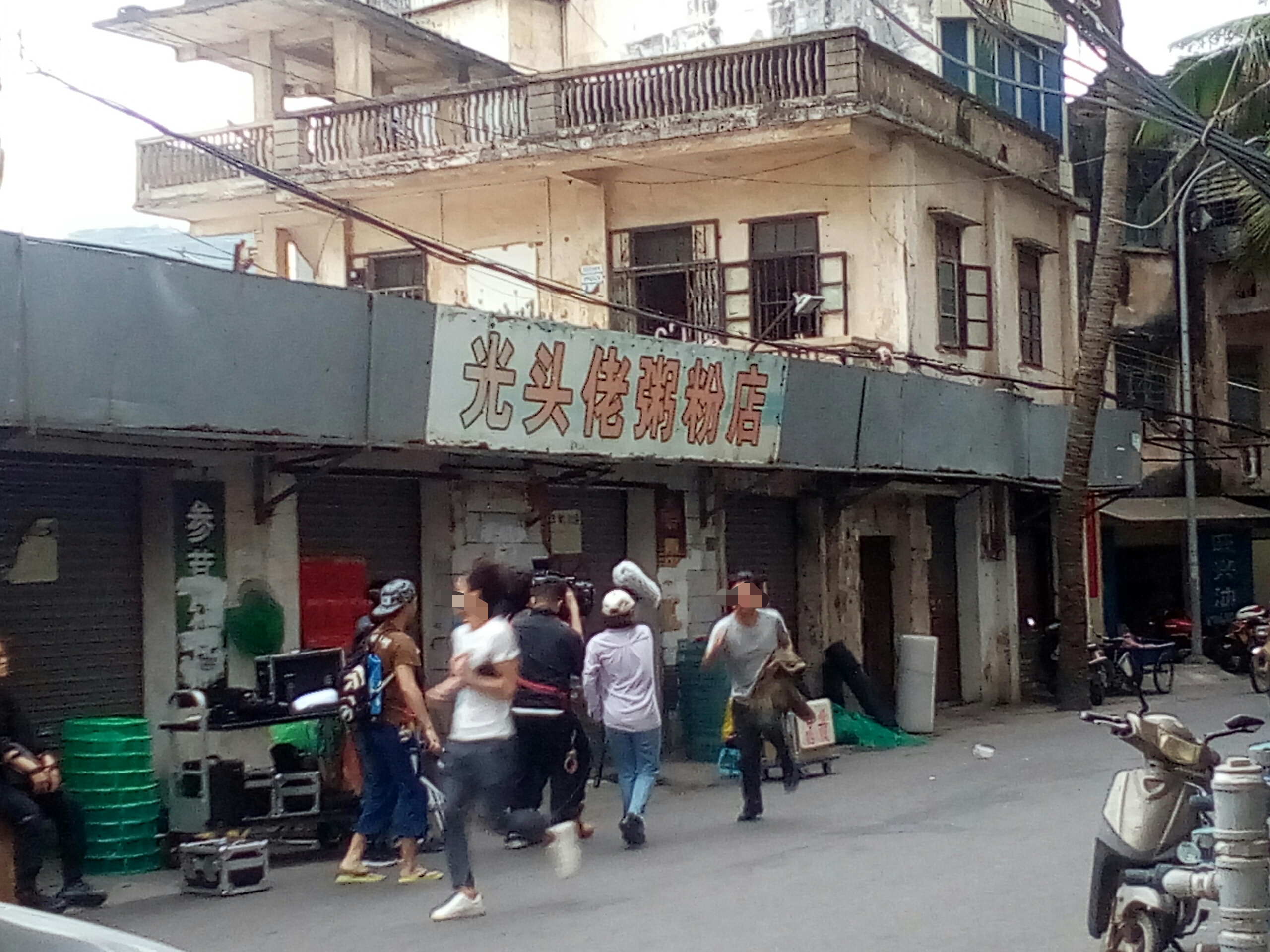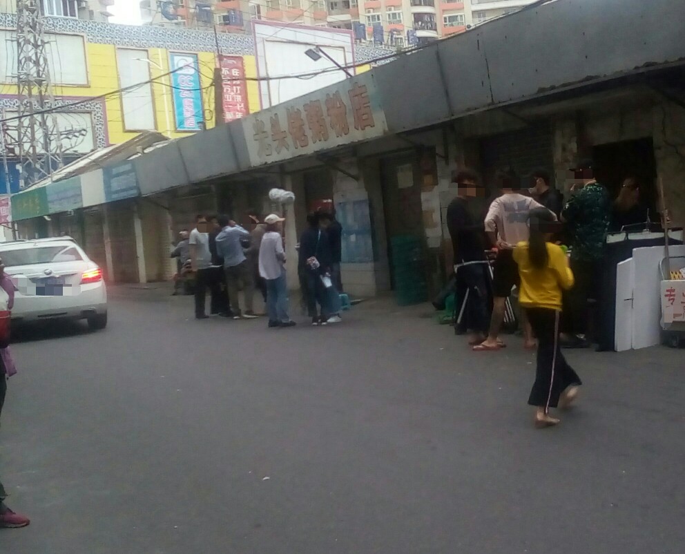 有好多人围观与途经的都停顿下来看拍等,也拟阻了下他她们时间,貌似有看现场景,也不知是拍何年代的,看衣着打扮,拟是民国解放初~??拟见一男子徒步间,突然停顿并蹬在一推着杂物的路边摊,一穿着黄色衣服的小女孩摊前询问等?~后见一男子从其身而过~期间发生什么不知~后见此蹬在地上男子~一路追赶途经身后过的男子~~