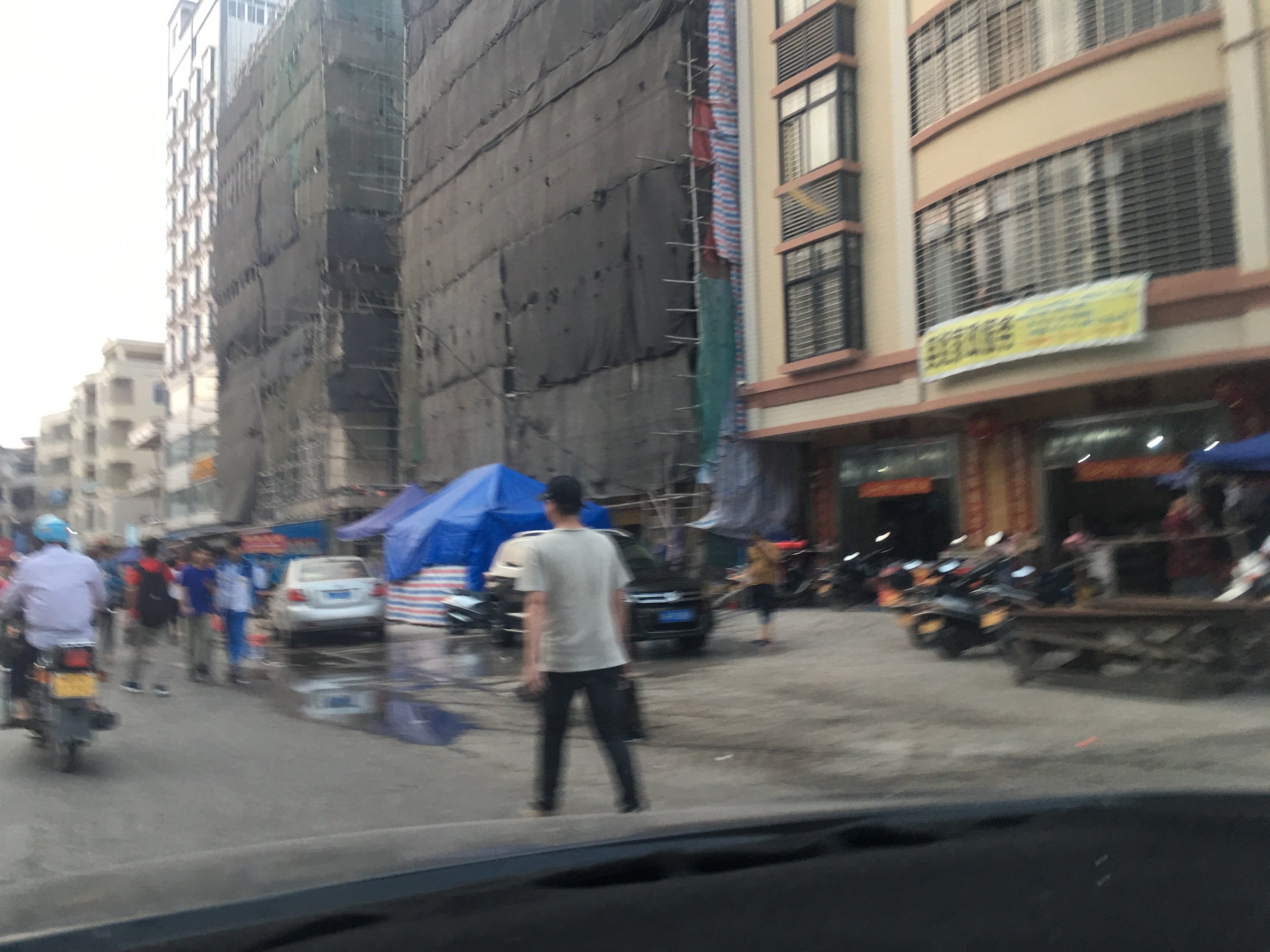 4月3日杨梅小学路段的繁华街市。