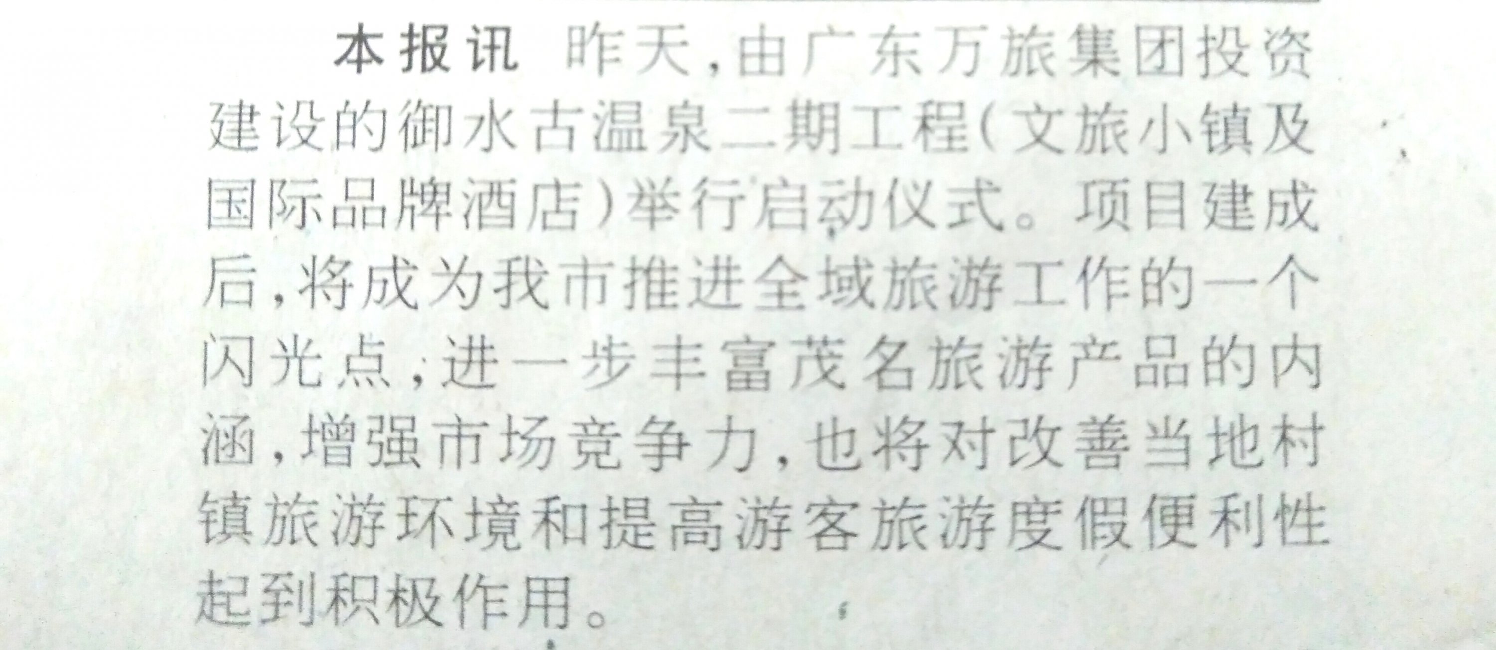 报刊:御水古温泉二期工程(文旅小镇及国际品牌酒店)启动