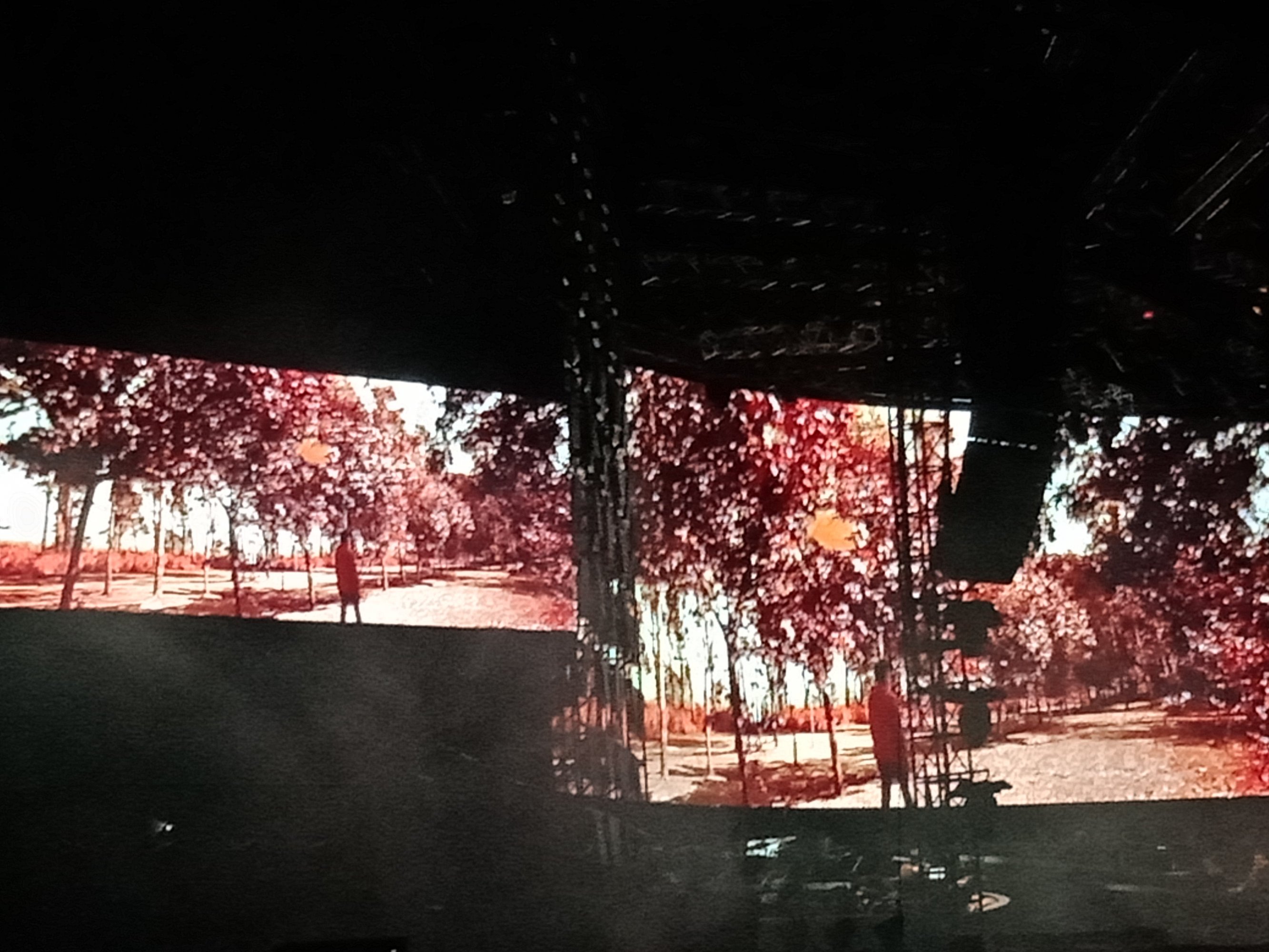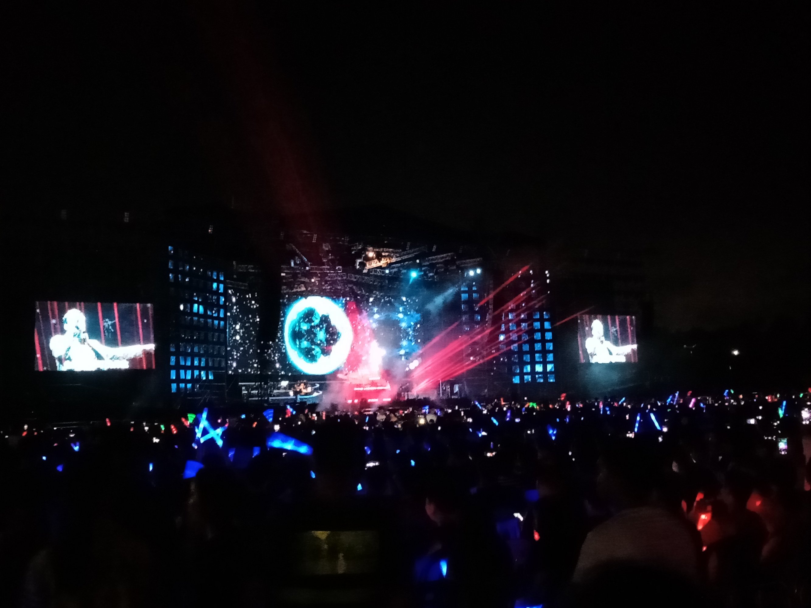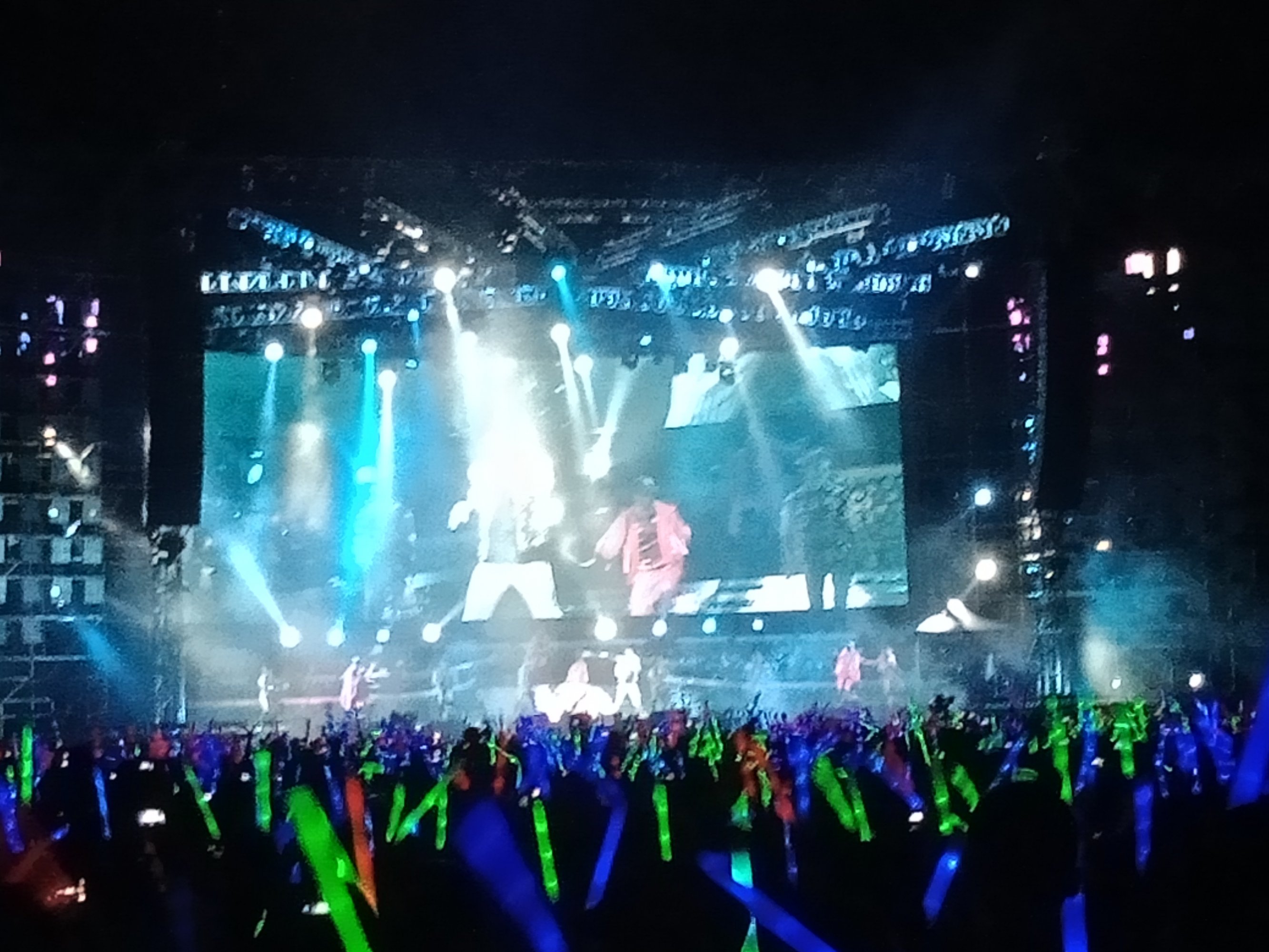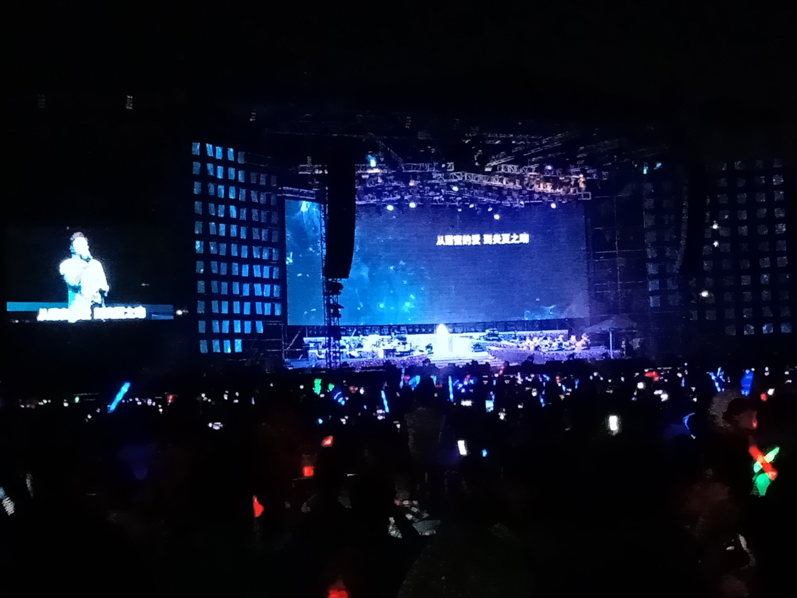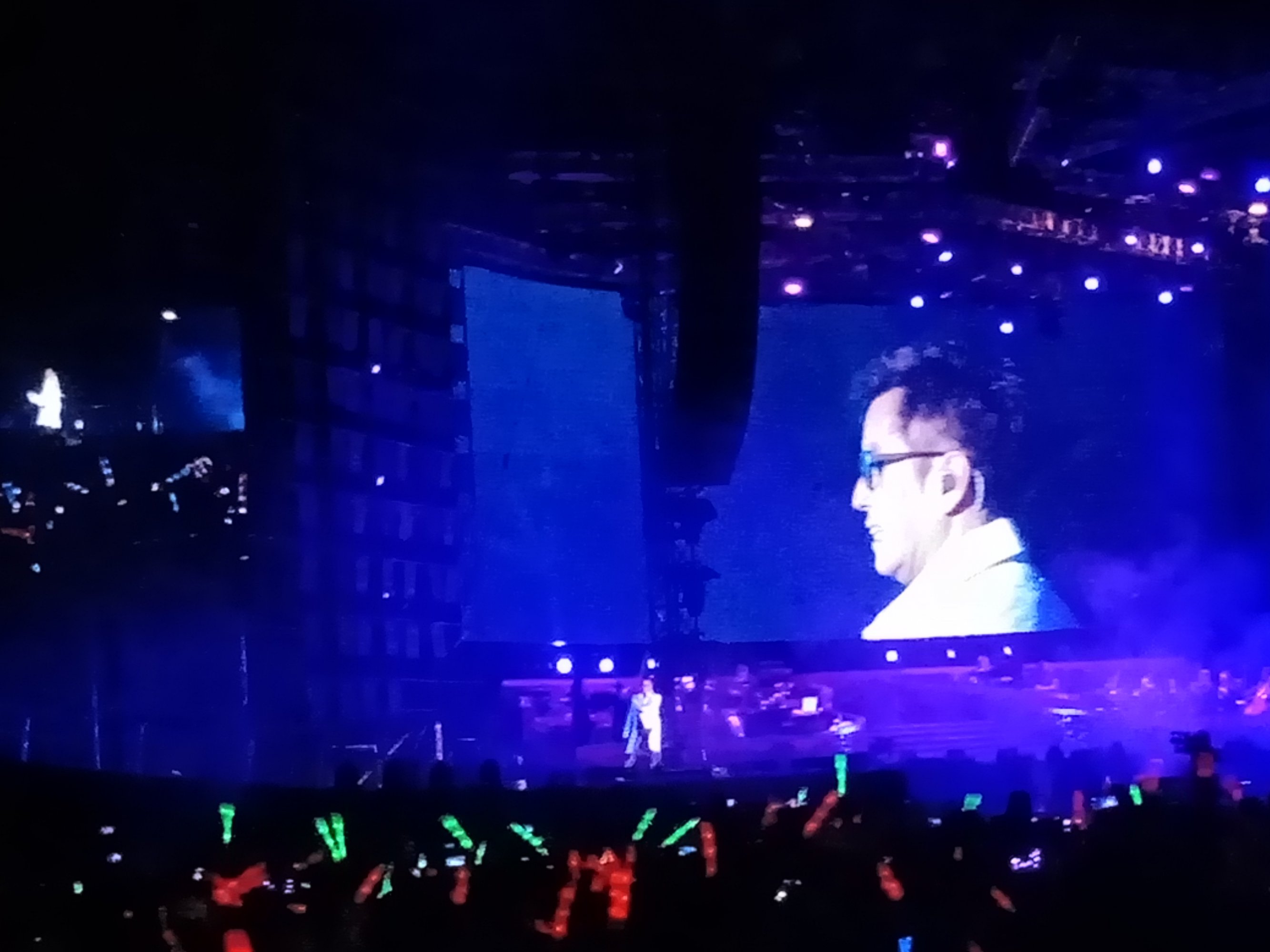 先明下:因咋晚进场后只能进入较靠后的座位,并两边都有铁栏与安保工作人员等把守,不能随意走出两边,较靠近距观摩拍摄等,或为安全安稳等因素,舞台貌似与最前座的也有一定距离等~只随意远距拉近拍下,可能不大清晰,将就吸吸:tongue:
