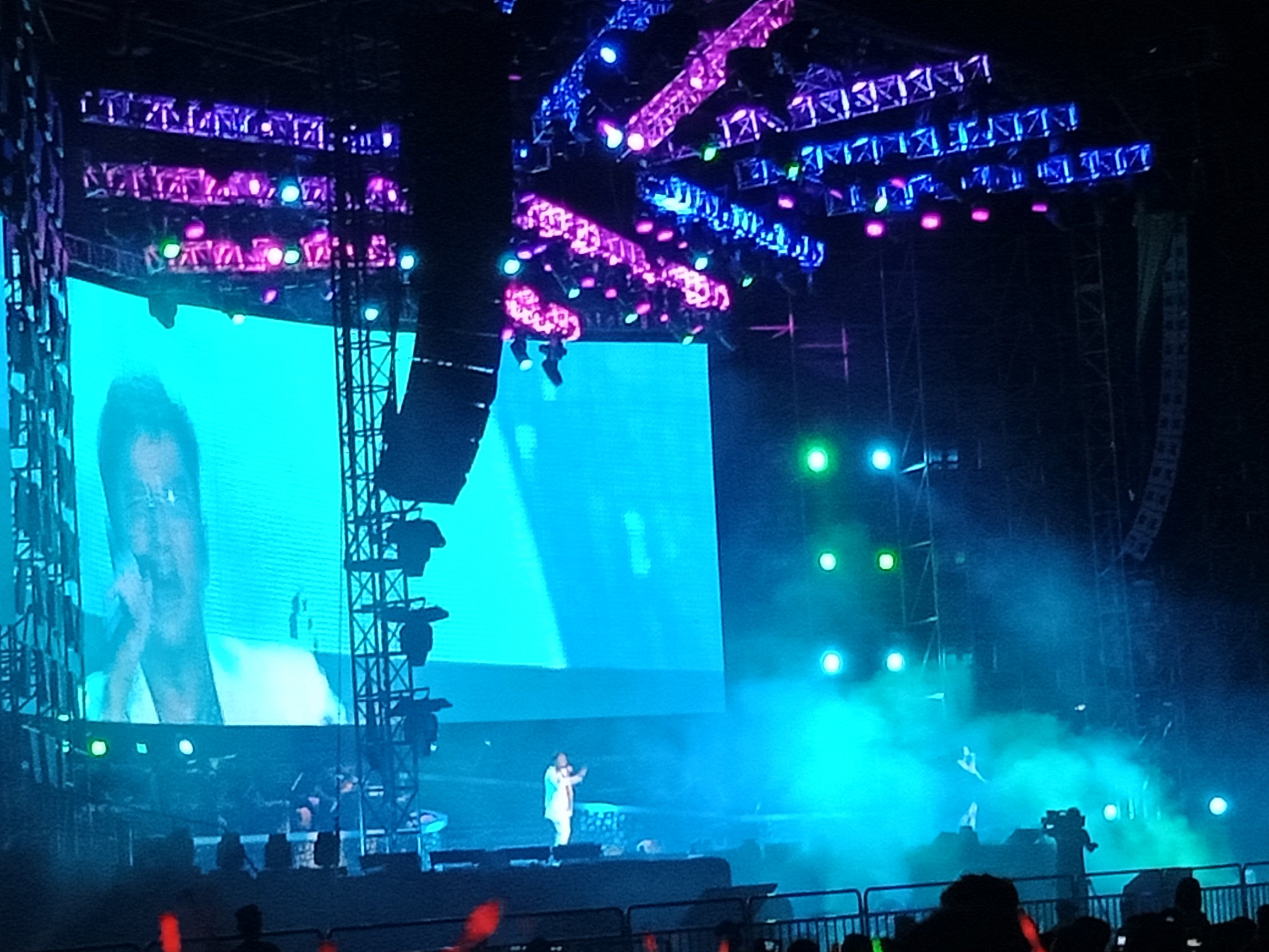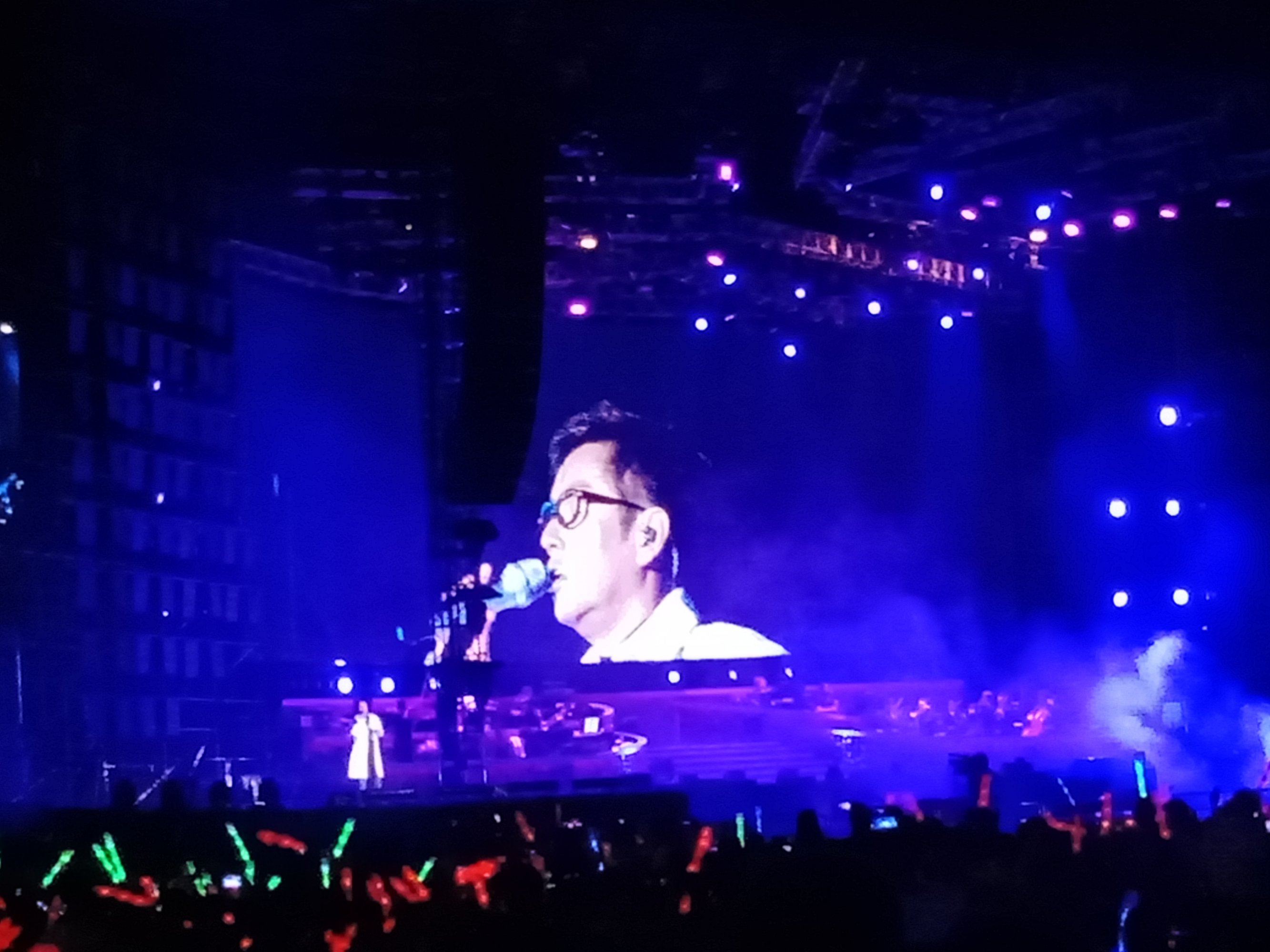 (当时有点想发些图上论坛共享但流量发不出?),个人觉得真是场好的个人演唱会,也第一次在本地领略倾听到一场真正不一样的精彩演唱会,不是瓦个人觉得,而是旁听旁人所讲,与散场后都拟听些观众好的评论,现场大家浮动互动~起来!现场诂有万几人?谭校长很认真落力歌唱并不时与观众谈笑互动等,貌似已过法定演唱会时间,但谭校长见观众热情高涨,一直唱到十一点几,最后几首(朋友~)与最后一首(讲不出再见),这次天公作美,或许是谭咏麟是福星福将:he:也或许是上天眷顾家乡:tongue: