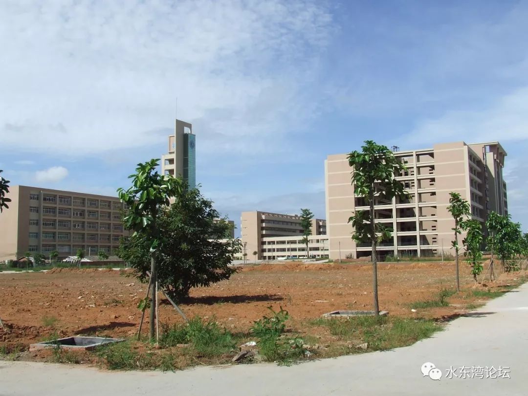 2006年8月30日,天气晴朗,蓝天白云,电白一中搬迁到新校区。整个校区只有那六幢教学楼可以用,只有一条环校道是硬底化。接下来的两、三年,一中的师生经历了什么呢?生活上的不便利、教学设备的欠缺,校园建设严重滞后,停电停水常有、碰上下雨天,经常是脚踏黄泥水到教室,全体师生为校园植树种草是常见的事,体育课、电脑课、学生活动怎么办?可以想象一下当时的景象。还有晚上回校看晚自习,下班的路上,一个人根本不敢走夜路……但那时那些困难全体师生都克服了,他们也成为新校区的开荒牛。