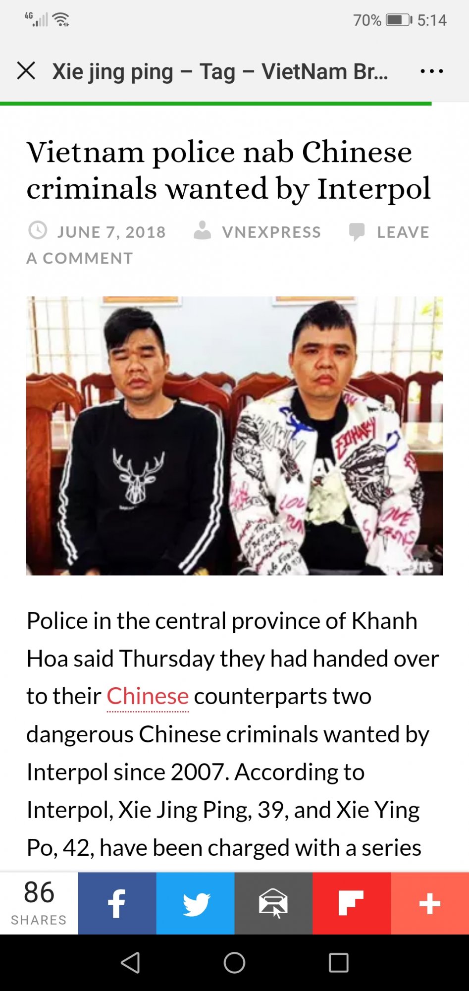 据中国警方调查,以谢某波、谢某平为骨干成员的黑社会性质犯罪团伙在10余年来涉嫌在国内实施寻衅滋事、走私货物、破坏选举、非法拘禁、故意伤害等犯罪活动,对社会治安稳定造成较大影响。案发后,谢某波、谢某平于2018年初先后潜逃境外。经中国警方前期大量细致工作,在中方线索支持和全力配合下,越南警方于近日成功抓获上述两名犯罪嫌疑人,并查扣一批重要涉案物品。