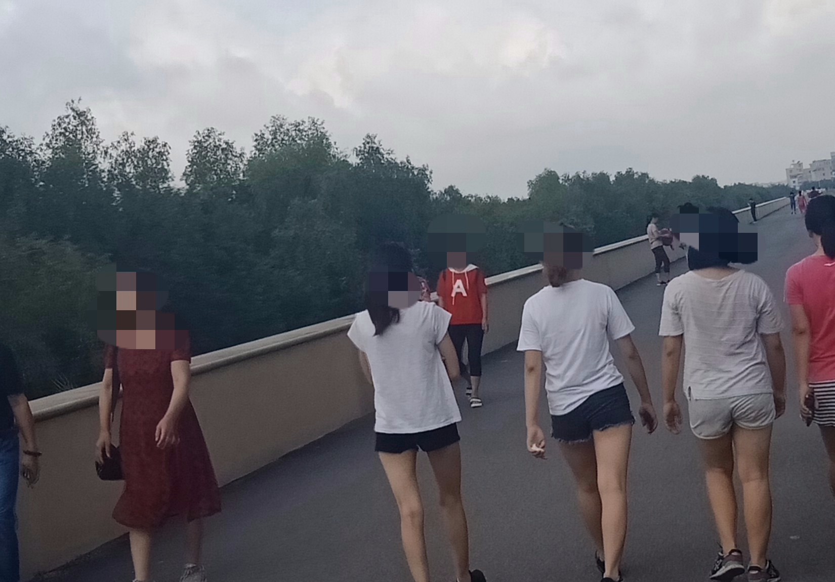 早上太阳公公出来的太早,有点晒,海堤绿道那些喜欢晨运跑步的人很早六七点就出来了,九点钟左右太阳一晒就散档了,太阳出来后都拟是些少游巴与些少自驾与些少乘公交与些少住附近的来游玩下,不过在栈道上是挺晒的,最好担雨伞,反正一天下来都有人,多或少或躲在树荫凉亭等地方还有下半夜的风花雪月,谈琴说爰~