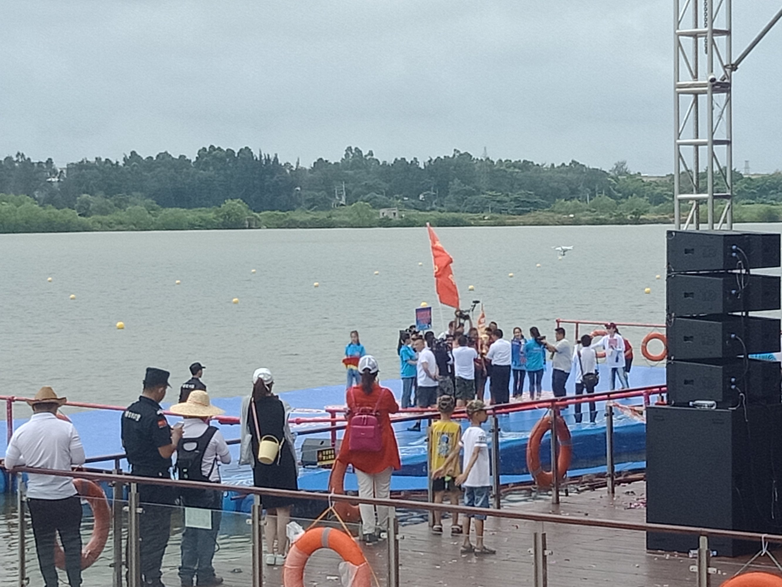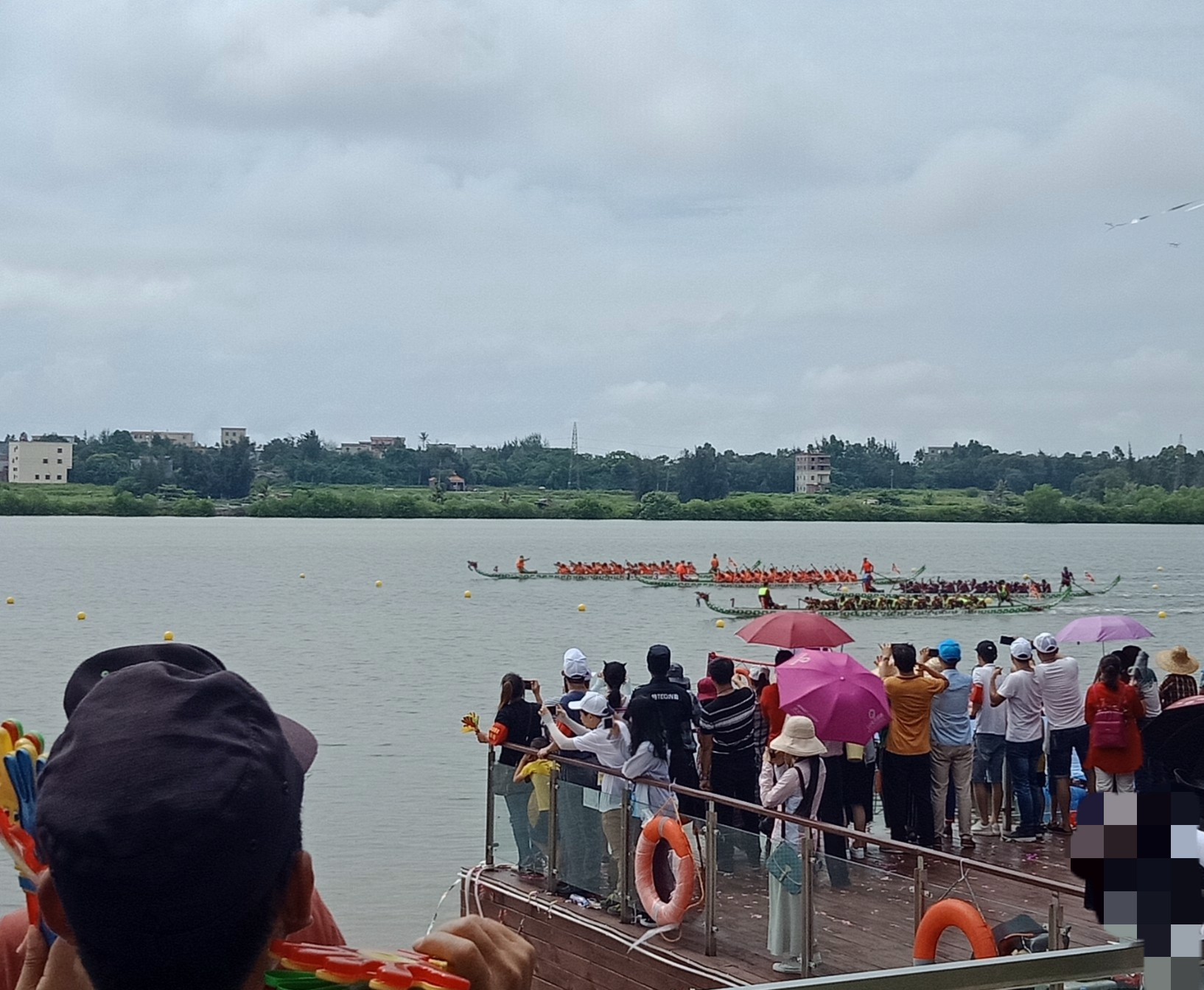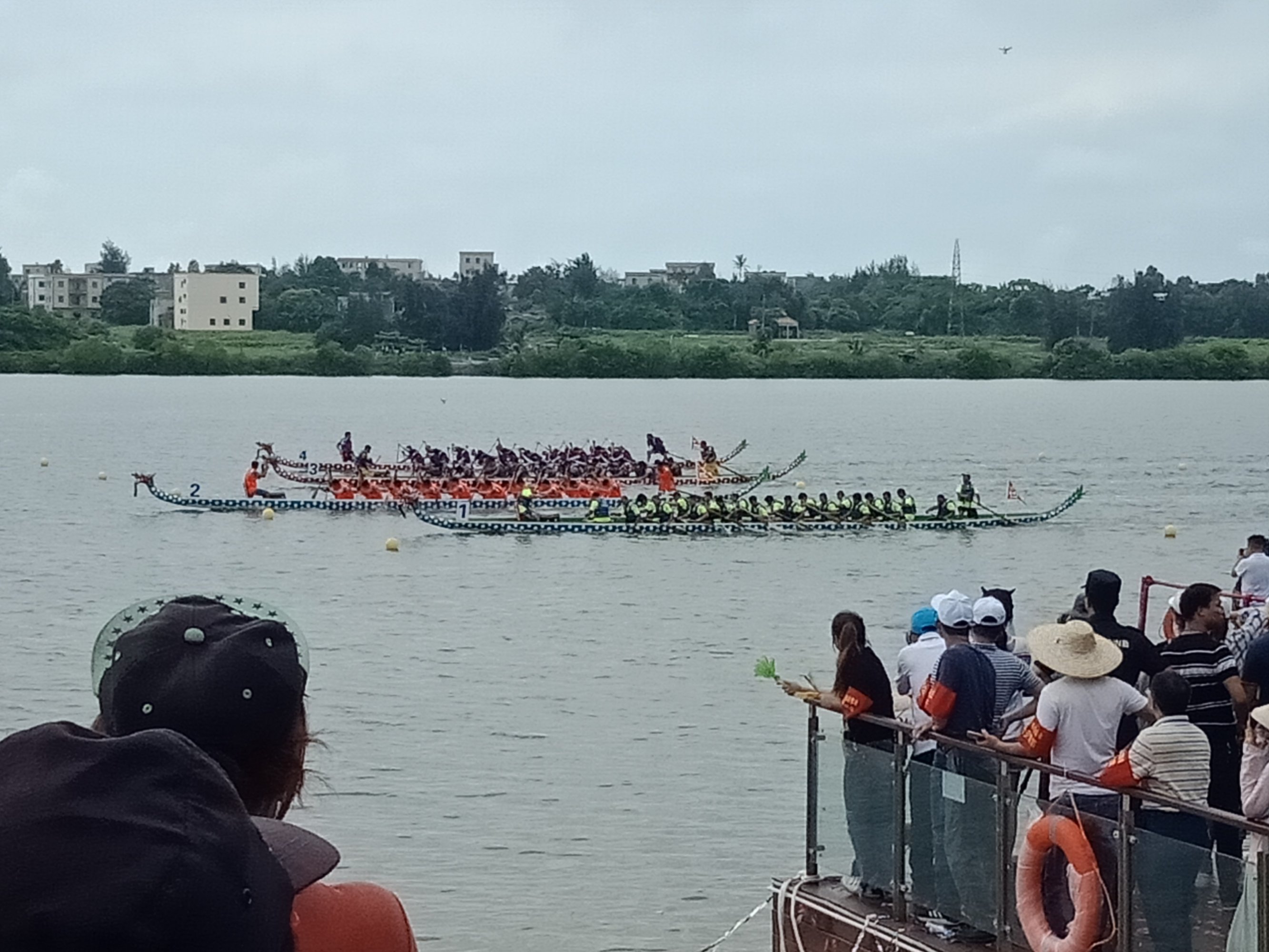 金源置业~2018茂名水东湾龙舟邀请赛~今早,在外面吃了点白粥送菜头,后驾摩向桥头方向墨胶,水东湾歌美海进发~哇塞,车都停到这边,貌似临时管制,车已不能进入公园,只好在附近稳个地方放好摩托~人算挺多,不过有公安交擎安保,志愿者等工作人员 分段维护进出,还行吧,需今天天气还好,太阳不晒,但声说声辛苦啦!因或许人太多,分段管制,也没能更进一步接近中心地带观看台(将就吸吸、),但在四周看去,能看到龙舟与能站人的地方都貌似见站满人?或有空中无人机更清楚清晰?貌似9点钟左右才开始~直至接近12点~