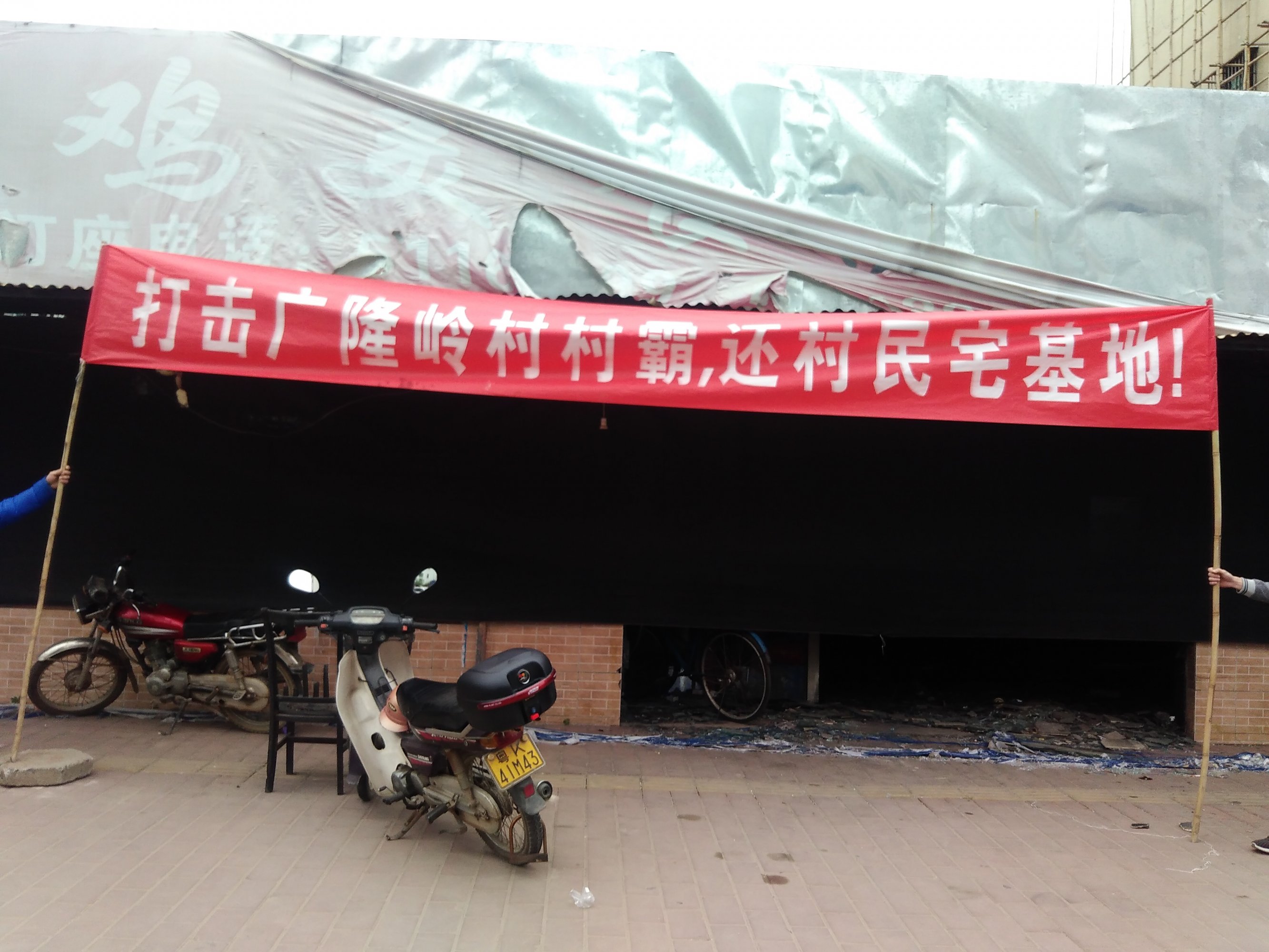 今天冬至,又是个难忘的日子。不是因为有年例节吃,而且2017年12月22日这天,广隆岭村年轻人奋发起义到厂前路宅基地拉横幅抗议打击村霸,并遭受到黑社会份子围堵抢夺。