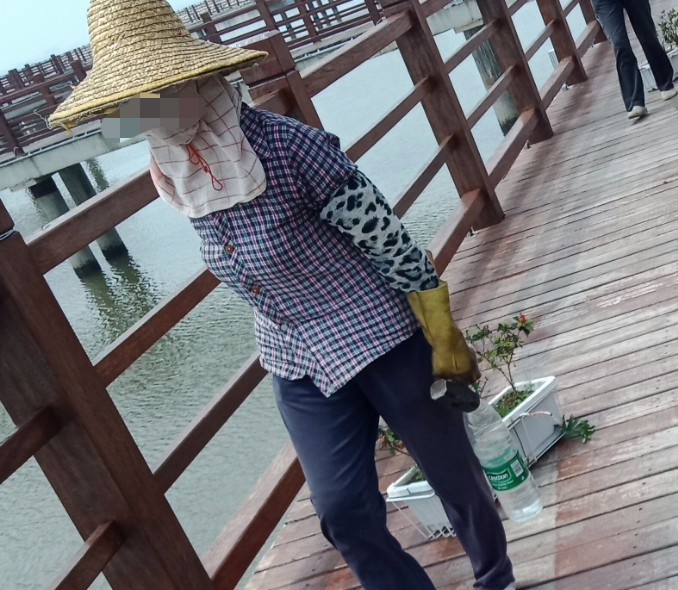 科普栈道一样人来人往,貌见有人要过,施工人员就暂停下,也阻了些施工时间~