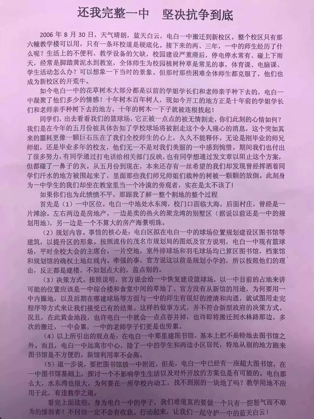 就在今年5月,电白一中师生突然被告知: