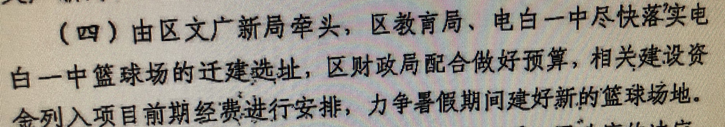 1.施工队进行的是20个高标准的篮球场建设。包括4个比赛专用灯光硅PU球场。 2.一中现行的绿化覆盖率饱和无法安置场地内的树木,桃花心和大叶榕都属于廉价树种,而且移植后存活率极低。 3.打碎原有校道,是为了球场的排水系统施工需要,以后会恢复。炮机9月7号进场,在下午13点左右电白论坛有人发贴投诉噪音,在14点停止该部分施工,响应时间不足一小时。 4,修通专用施工便道及进行场地围蔽是为了最大程度上降低施工过程中对学生学习的影响,是为了确保学生的安全。