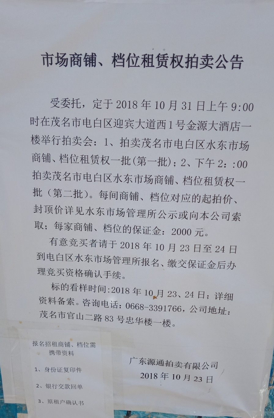 讨论 水东咸水田菜市翻新后拍卖