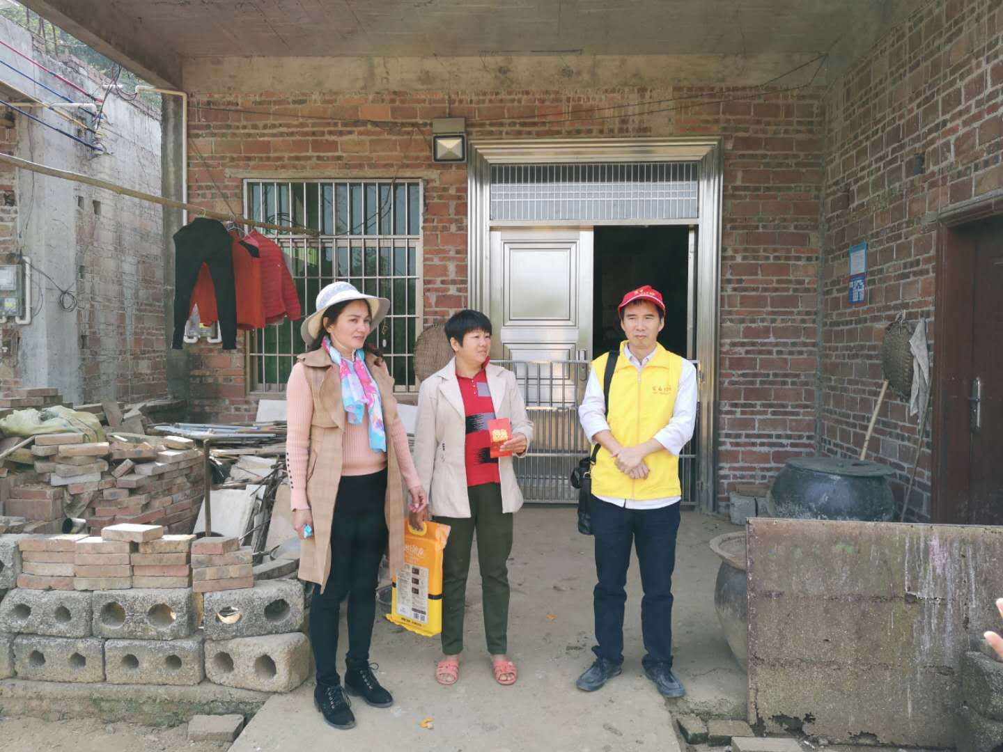 我们昨天慰问的最后一位朱成带(罗先生的遗孀)是哑巴,带这四个孩子,我们把最后的三包米都给了她家,志愿者还另掏些钱给她家。