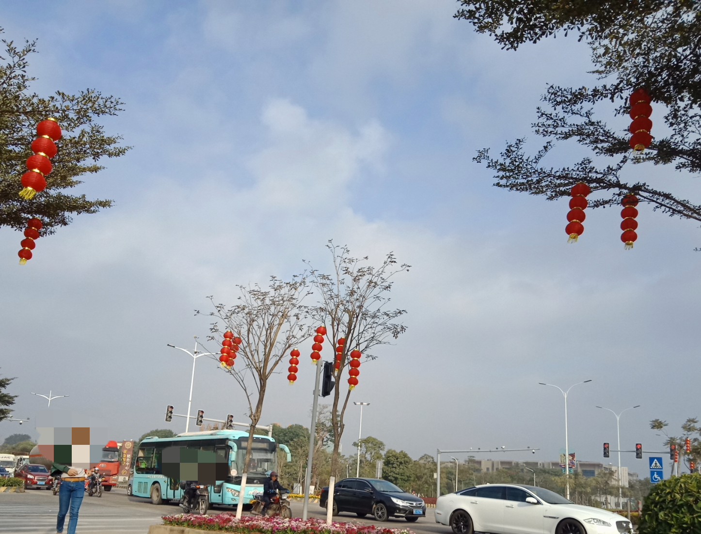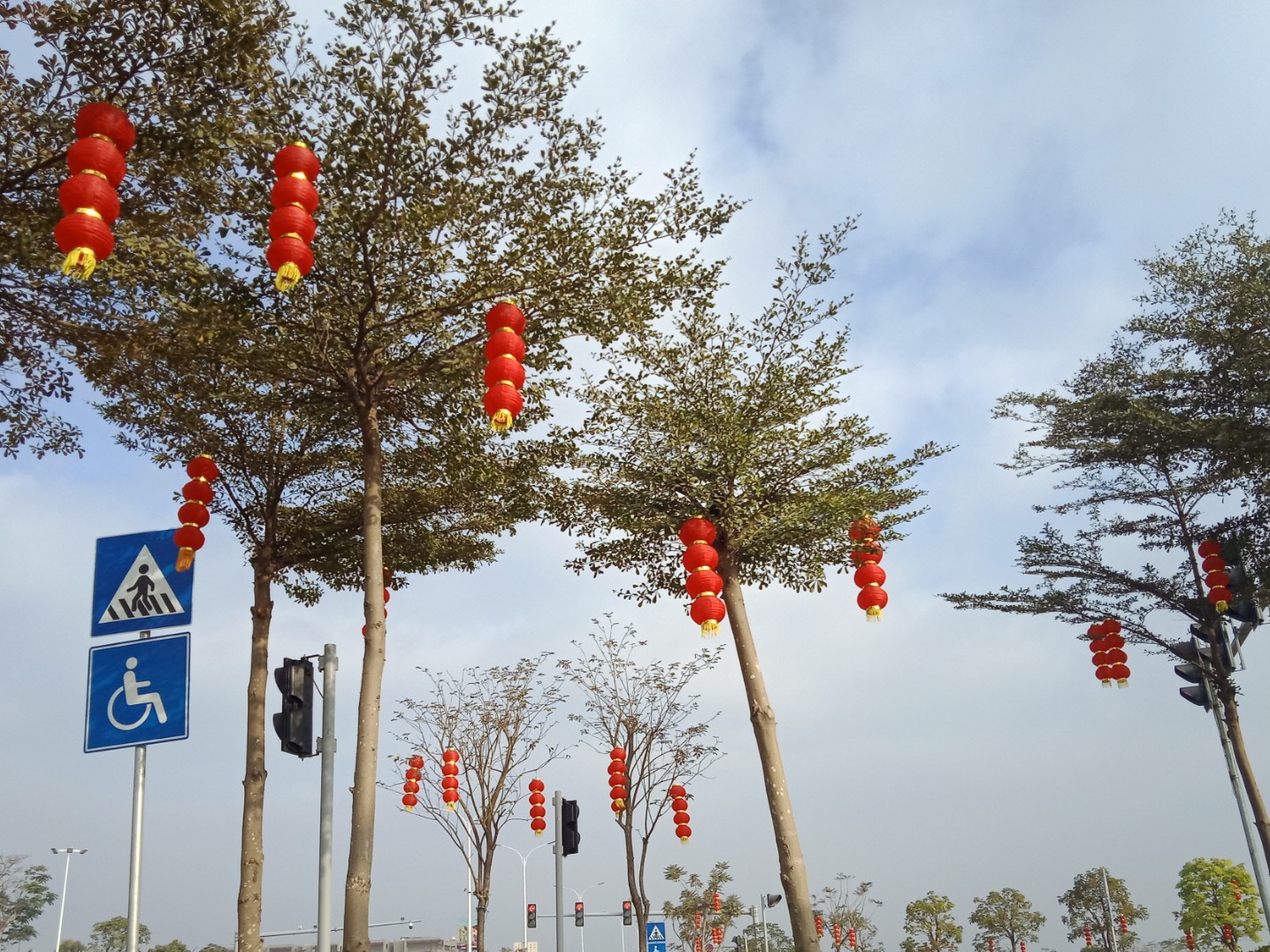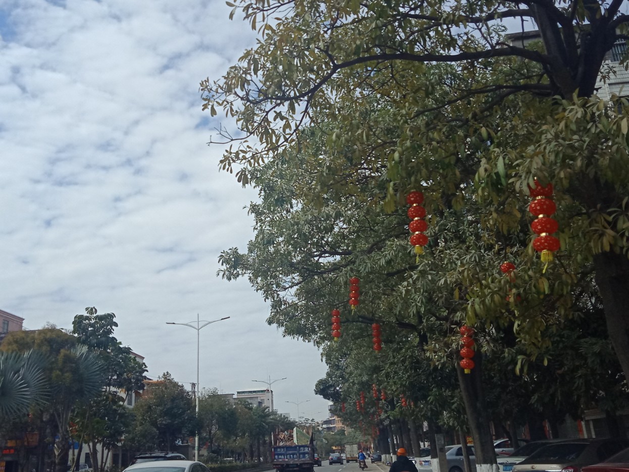 其他 好多地方路中间两边诂很早提前挂起应节饰物~
