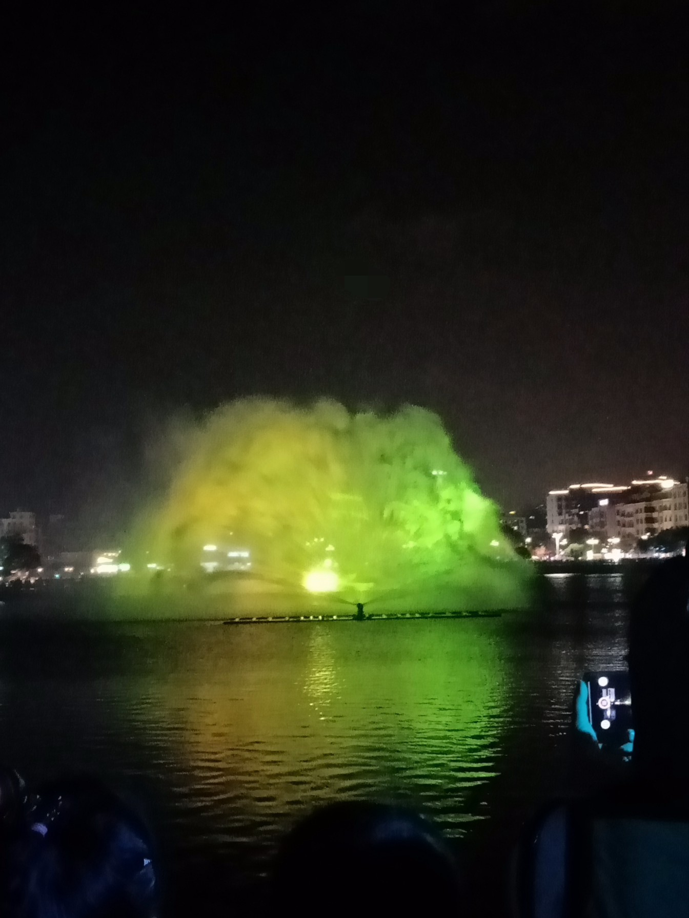 今晚特意又去吸吸,貌似还有些人婆知?围住湖边或坐在石椅上,而海堤绿道上也有好几帮人(有些带着老人小孩~),坐在石阶上,人也不间断来回,而该路段车辆也不间断(诂有些开车过来吧?)~,不过嘛平常那带也有好些人在徒步散步等,瓦也以为他她们徒散步的,后见他她们久久不离去,而当时时间也过了开场时间段,后来走近听下他她之间所言,才知是来看这的,其实大部分人貌似已知晓活动时间,况且各报到各媒体微信等也有传知吧~况且那一带都有告示等等~,再过后,瓦就跟他她们说下:春节期间是年初一至年初六开灯光秀,而过后,如无设备故障或天气或其它主观客欢原因等,可能就每个星期五与六晚开机,而时间也应与春节期一样或其它吧~(其实我对他她说的,并没有本贴所描的这么整洁,只简单告知下他她而己~并加多一句:反正还早,就驾车或徒步过栈道那边走走逛逛,(不过今天今晚突然有点冷,风有点大,特海堤边,要注意保暖哦~这些是心想的没有跟他她们说的),看他她装束衣着也是有备而来的~