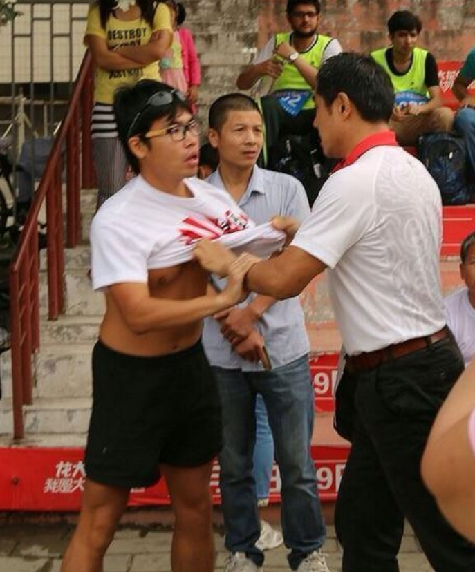 在第二十八届泰山国际登山节上,一名据称来自天津的30岁左右男子,穿着印有“大日本帝国海军”字样的T恤衫登山,被民众包围,有群众愤怒地将其T恤扒掉。 有网友对该男子行为表示愤慨,作为受害国的人民今天容忍了他,明天可能会有更多这样的人;更有网友直接表示:你可以试试去以色列穿个有纳粹标志的背心,看有什么结果。