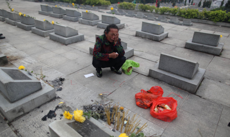 1984年4月28日在对越自卫反击战中,来自云南省嵩明县的原35207部队58分队战士赵占英牺牲了,牺牲的时候年仅20岁。20年后,直到2004年清明期间,赵占英烈士的母亲,才攒够足够来回的路费,第一次从家乡云南省蒿明县,来到边境麻粟坡烈士陵园看望牺牲了20年的儿子,自己唯一的儿子。终于第一次见到了自己唯一的儿子的坟墓。烈士妈妈在儿子墓前的行行泪、声声泣,撕心裂肺、肝肠寸断的哭喊,那是天地间最悲壮的声音,