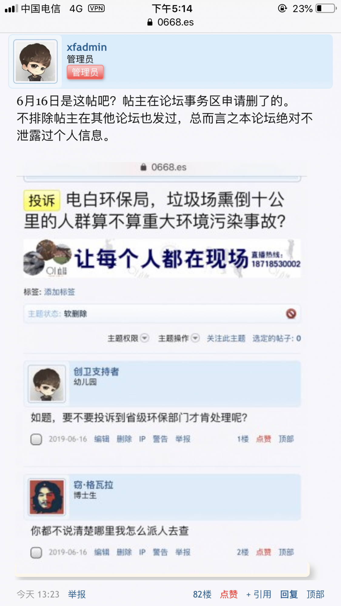 讨论 蓝田坡小学的校长在李鬼论坛发对垃圾堆填场恶臭表示不满的帖被撤职 (1人在浏览)