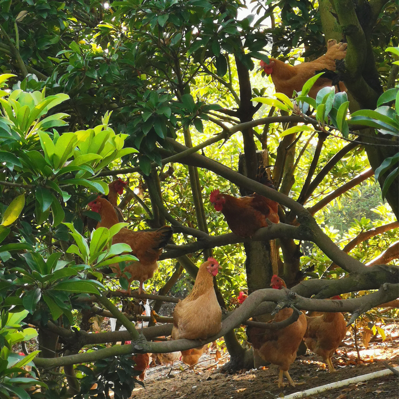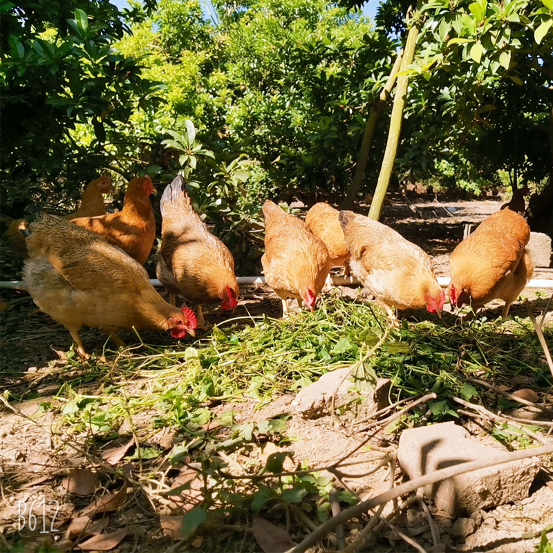 果园三十亩地供鸡活动,喂养中药材与谷子,青草,提高鸡的免疫力,无激素。