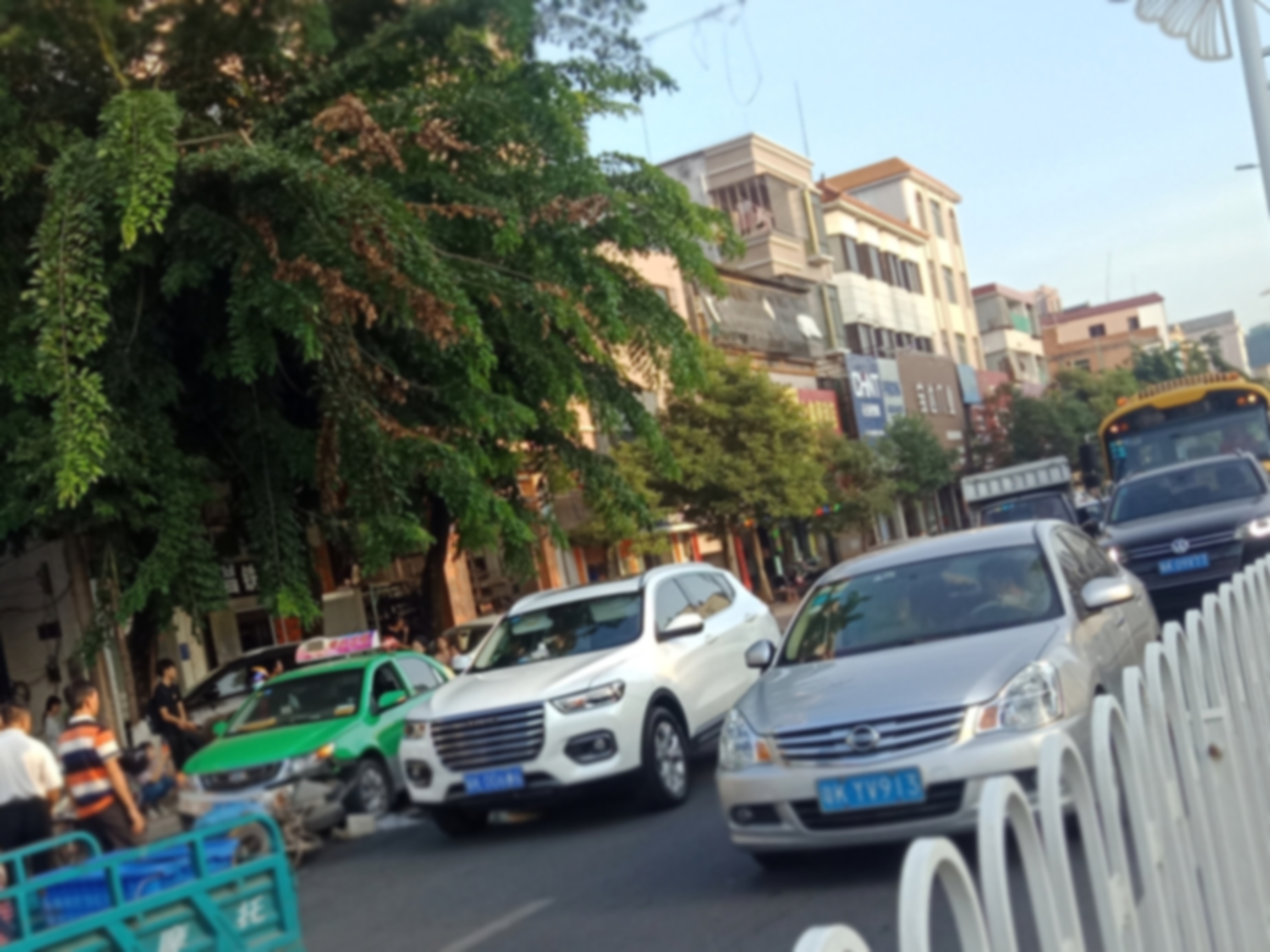 目测所见,1职校对面出租与白色汽车磨擦摩托微撞,2糖果厂红绿灯绿公交与小车磨擦,3车站红绿灯小车与摩托微撞,目测有交巡到