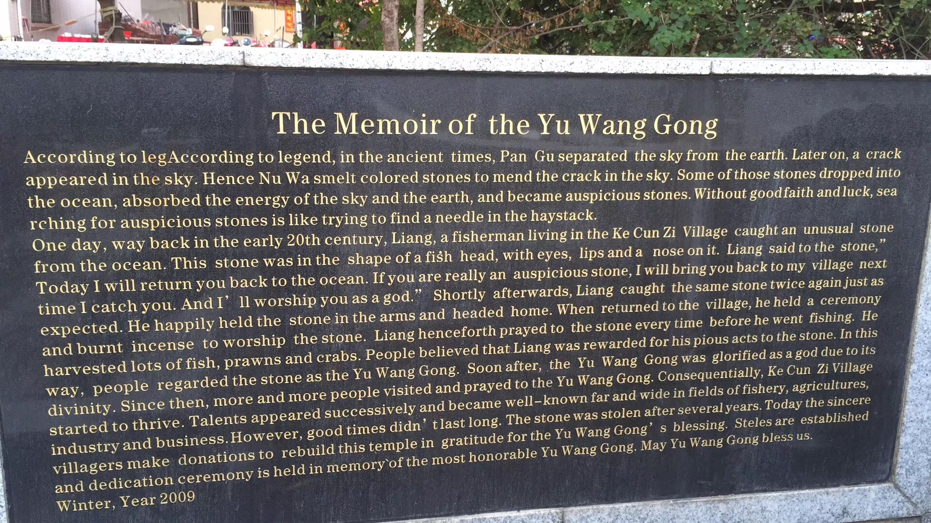 这石碑标题是“玉王宫的传说”吧?从不见过老外在澳内海出现,竖立这个外文碑是出于何目的?莫非澳内海要成为国际旅游风景区?