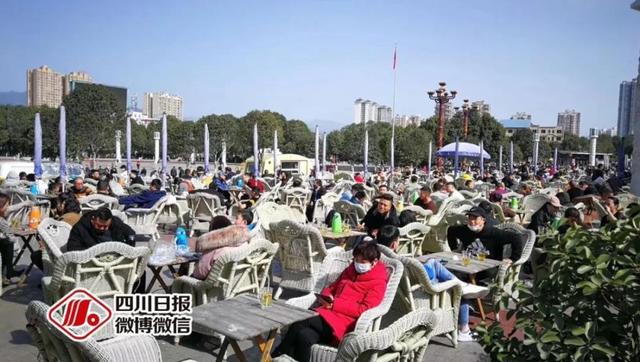 △2月21日 四川广元利州广场 市民扎堆喝坝坝茶