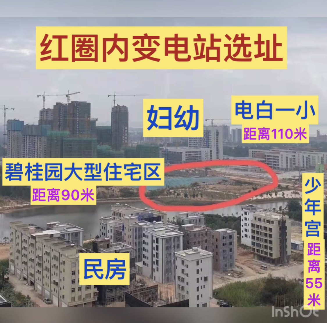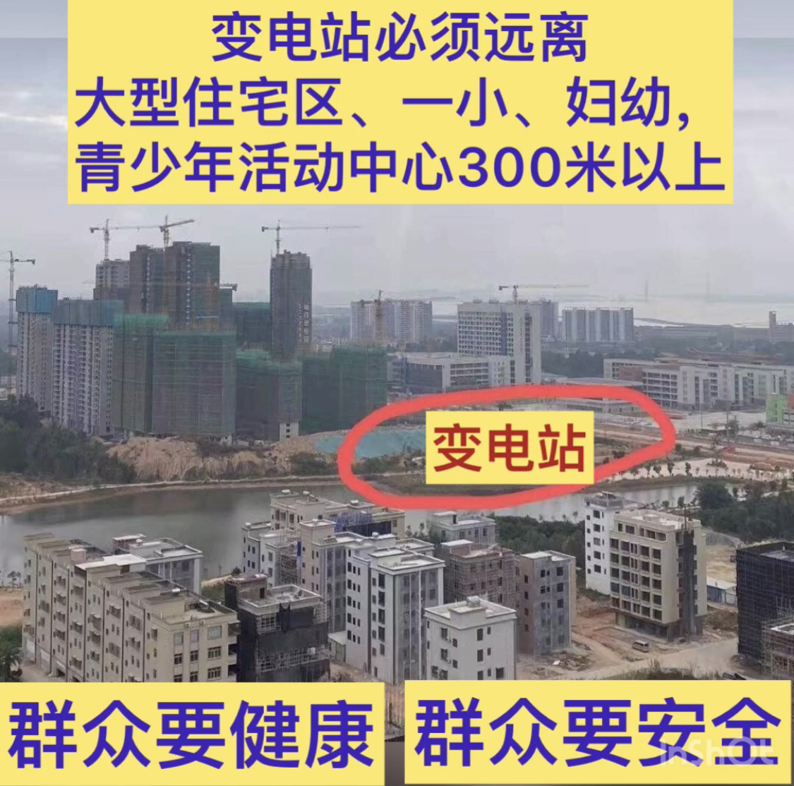 要健康,要安全,变电站要远离电白一小,青年活动中心,妇幼保健院,凤凰大道,大型住宅区等人流密集地300米以上