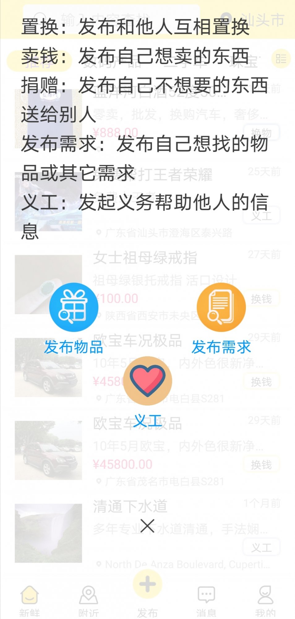 3:捐赠:发布自己的物品,无偿赠送给有需求的人士,以此助人为乐。